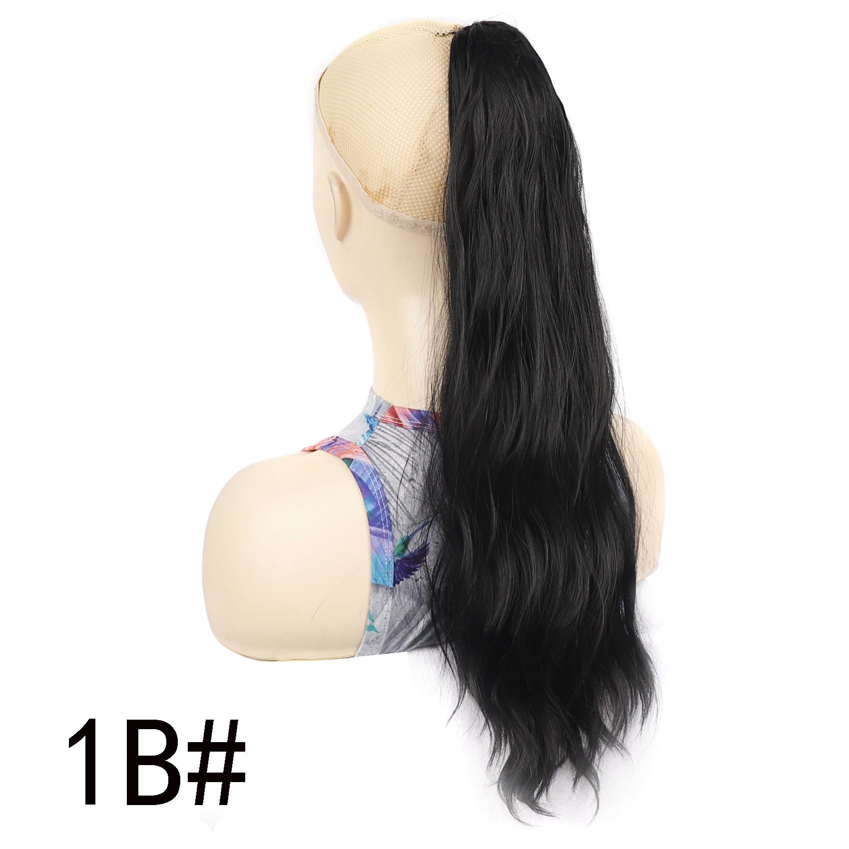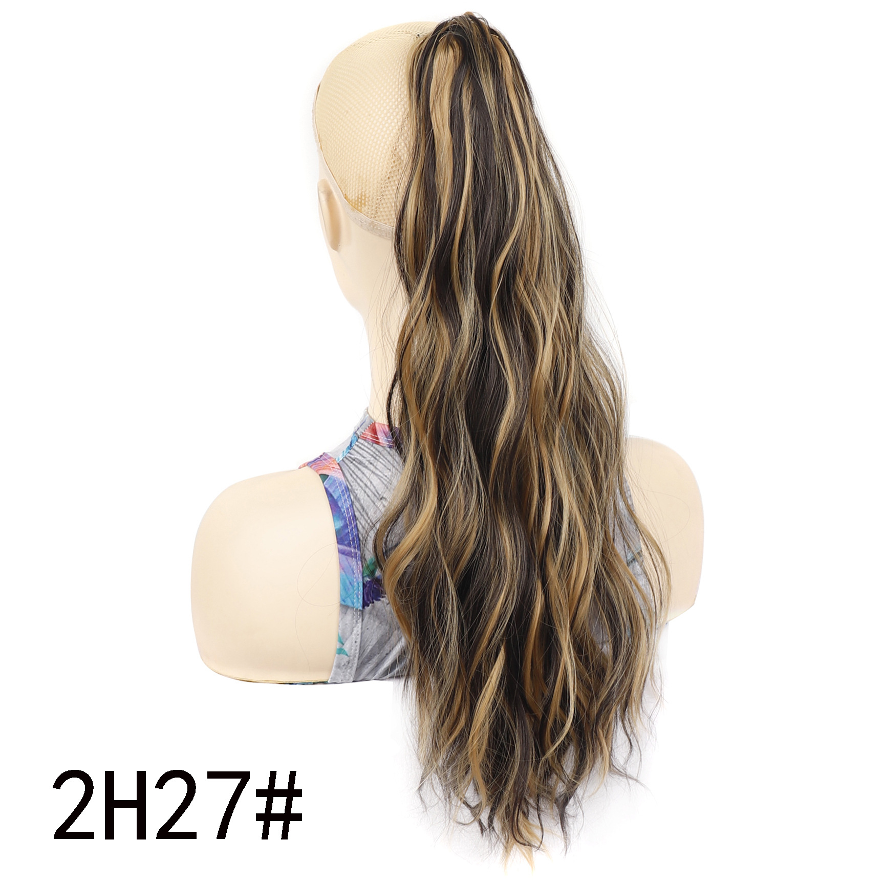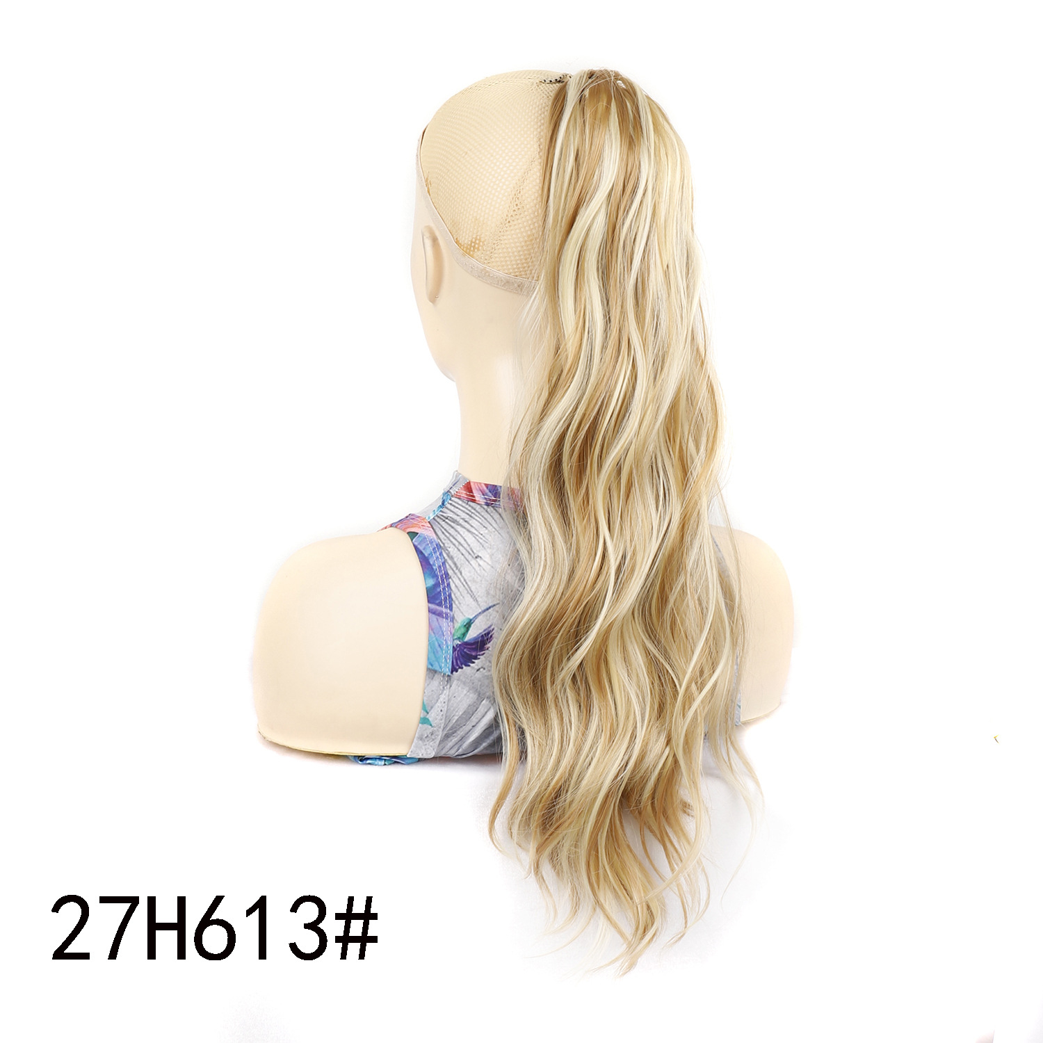 Foreign trade wig for women, long hair in a ponytail, European and American water wave long curly hair, small scratch clip synthetic fiber wig, high ponytail