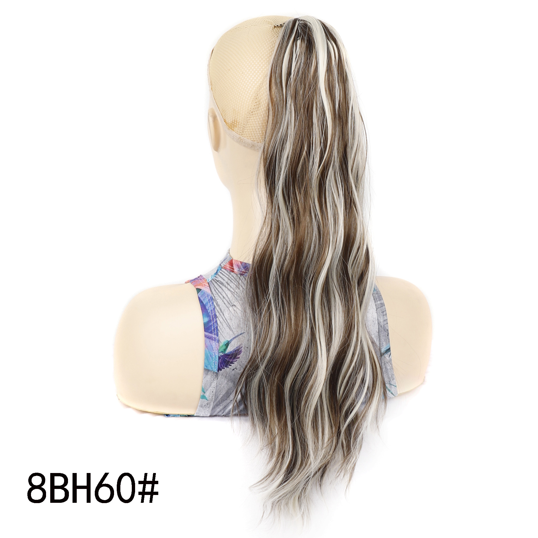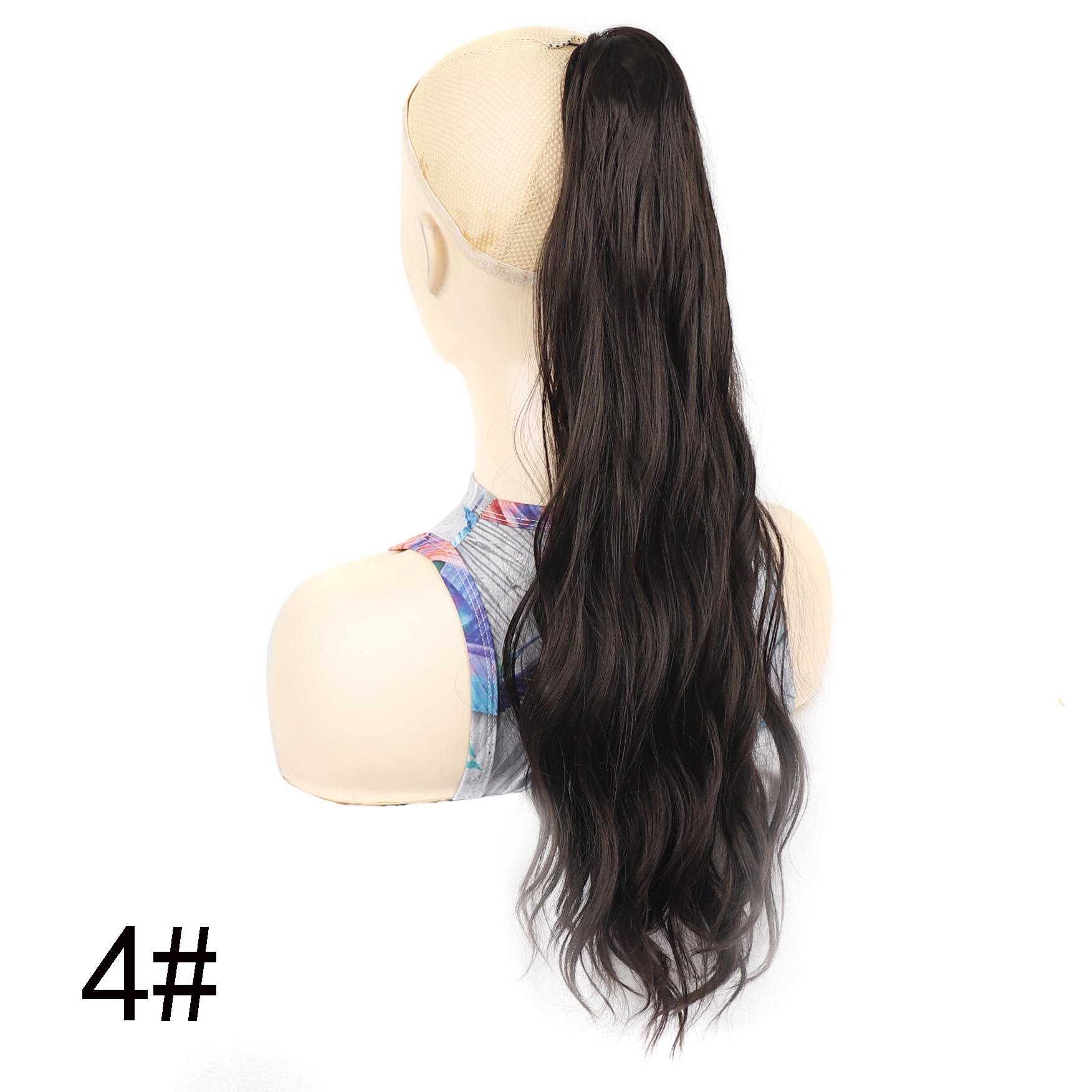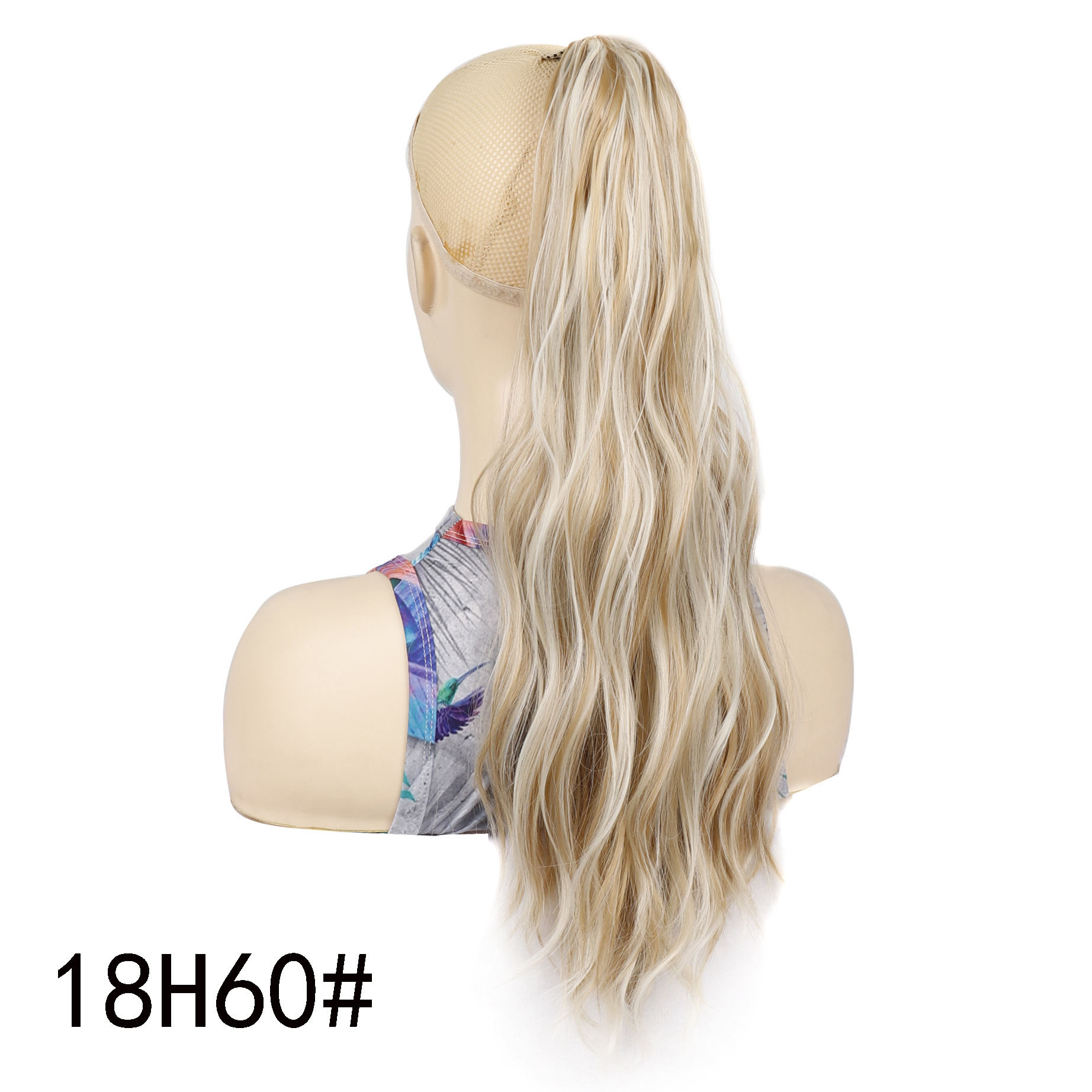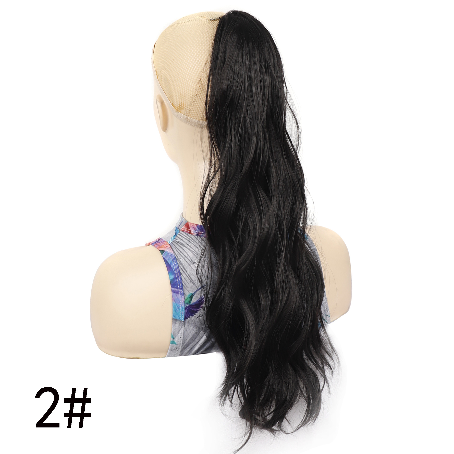 Foreign trade wig for women, long hair in a ponytail, European and American water wave long curly hair, small scratch clip synthetic fiber wig, high ponytail