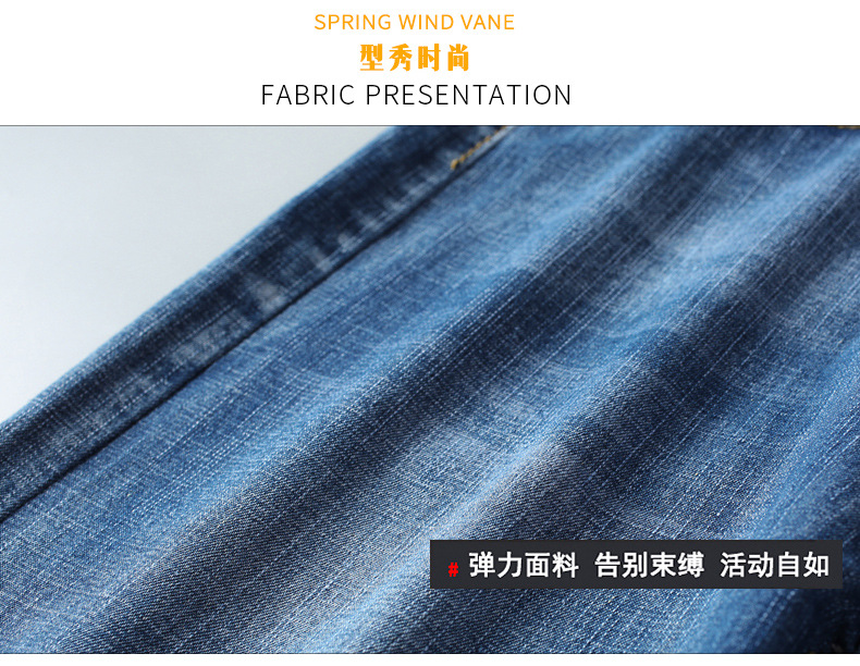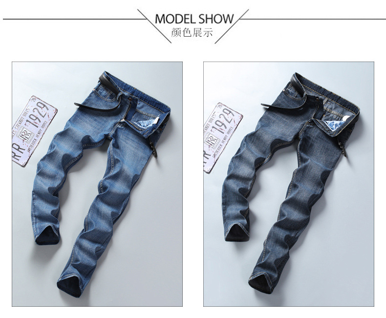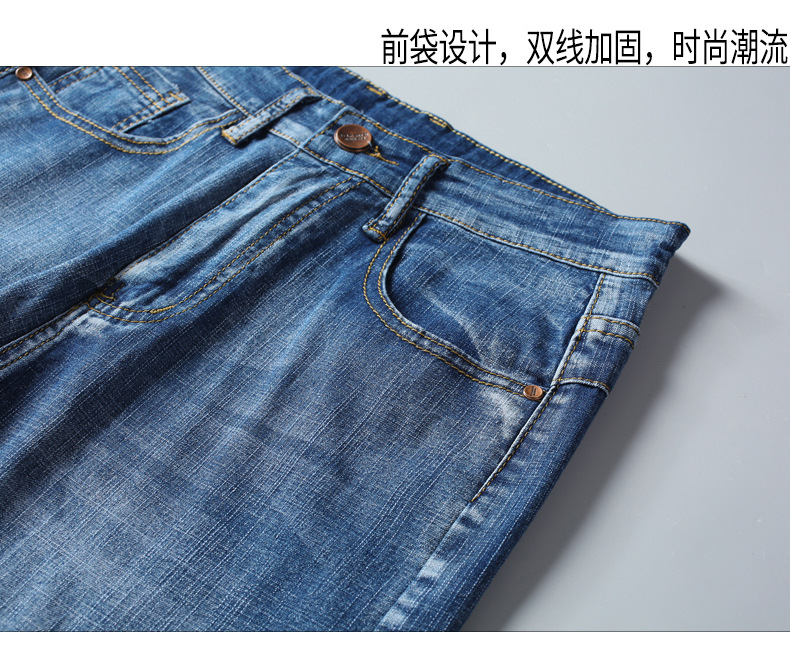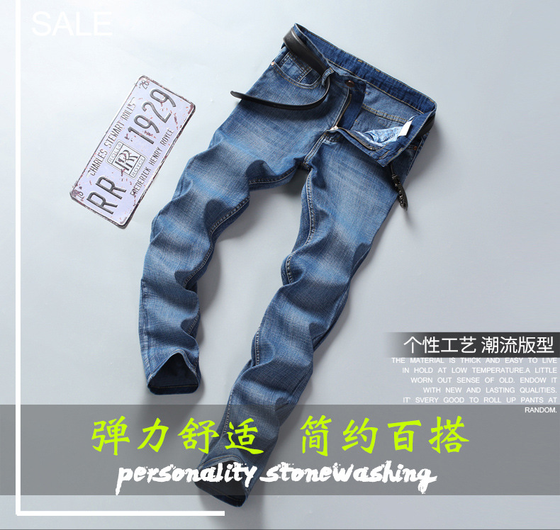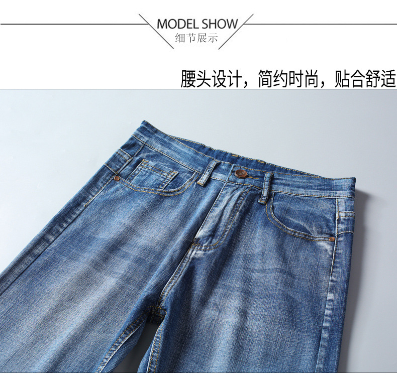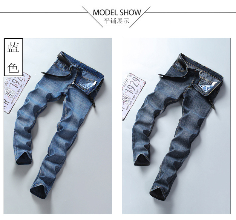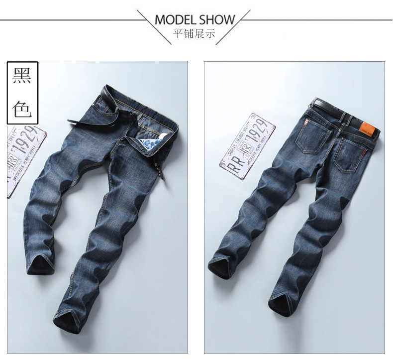 Four-season jeans, men's slim-fit straight jeans, men's Korean-style large-sized stretch pants, trendy spring style