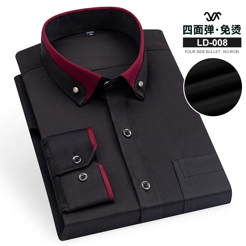 Four-sided spring men's shirt, long-sleeved lapel, crystal buckle, business casual workwear, high-end, trendy and cool men's shirt