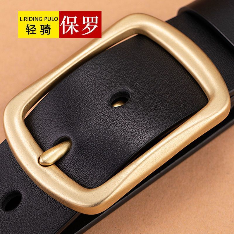 【 Free Punch 】 Men's belt, pure leather pin buckle men's denim, simple, retro, casual and versatile genuine leather belt
