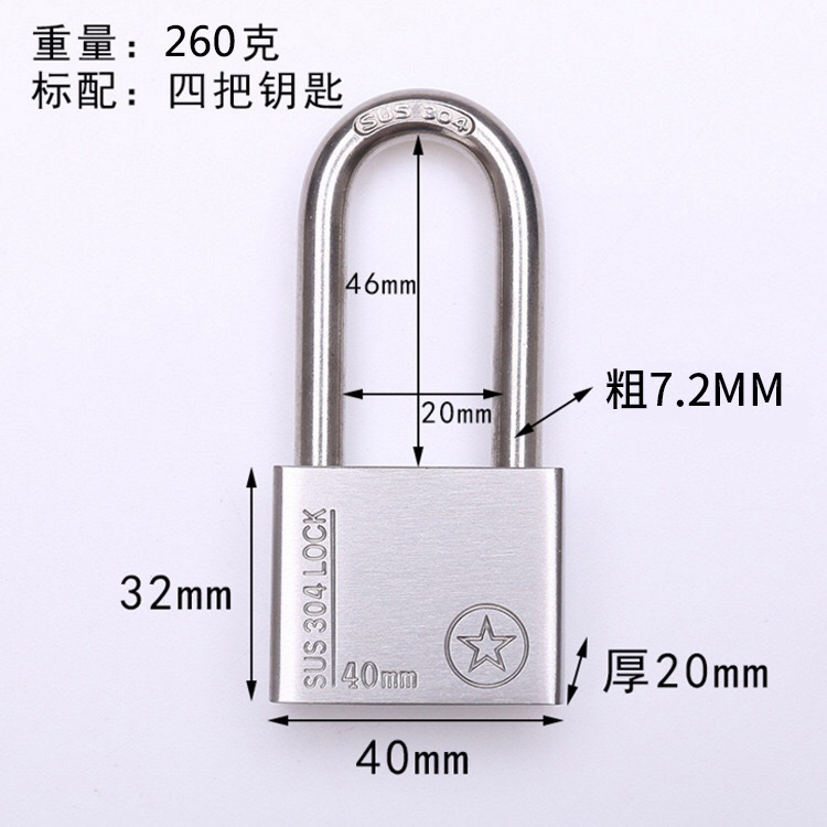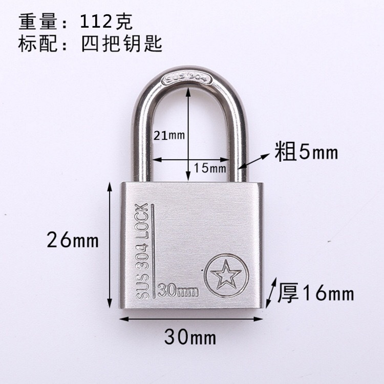 Free shipping 304 stainless steel padlock, anti-theft, anti-prying, waterproof, open lock head, balcony window, dormitory warehouse door, Grade B