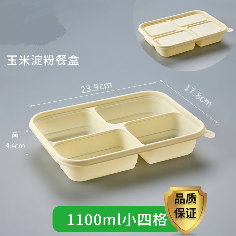 【 Thickened 】1100ml small four-compartment corn starch lunch box with lid *1 set