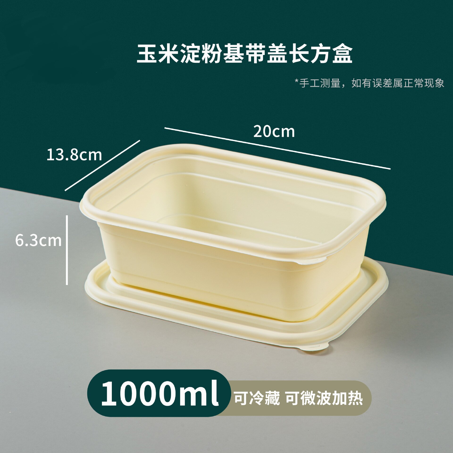 【 Thickened 】1000ml single-compartment corn starch rectangular box + lid *1 set