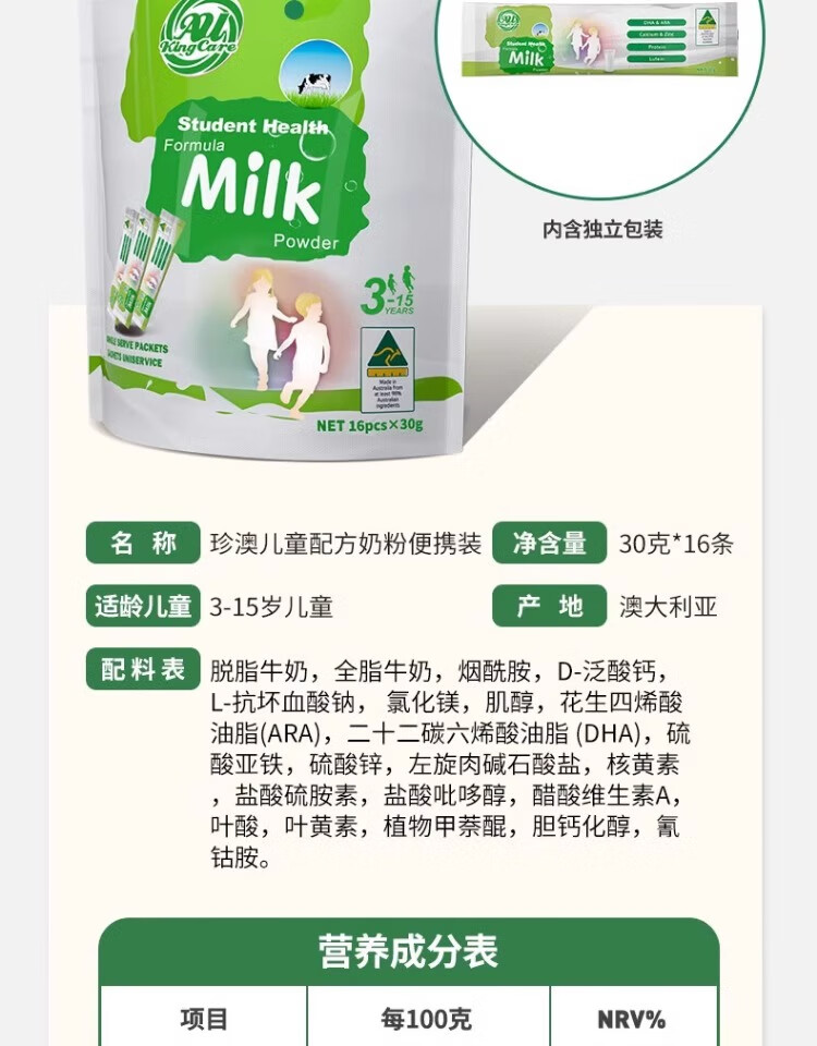 Free shipping for wholesale! OPTINA imported milk powder, Australian Zhen 'ao Children's Modified Milk Powder portable set 480g