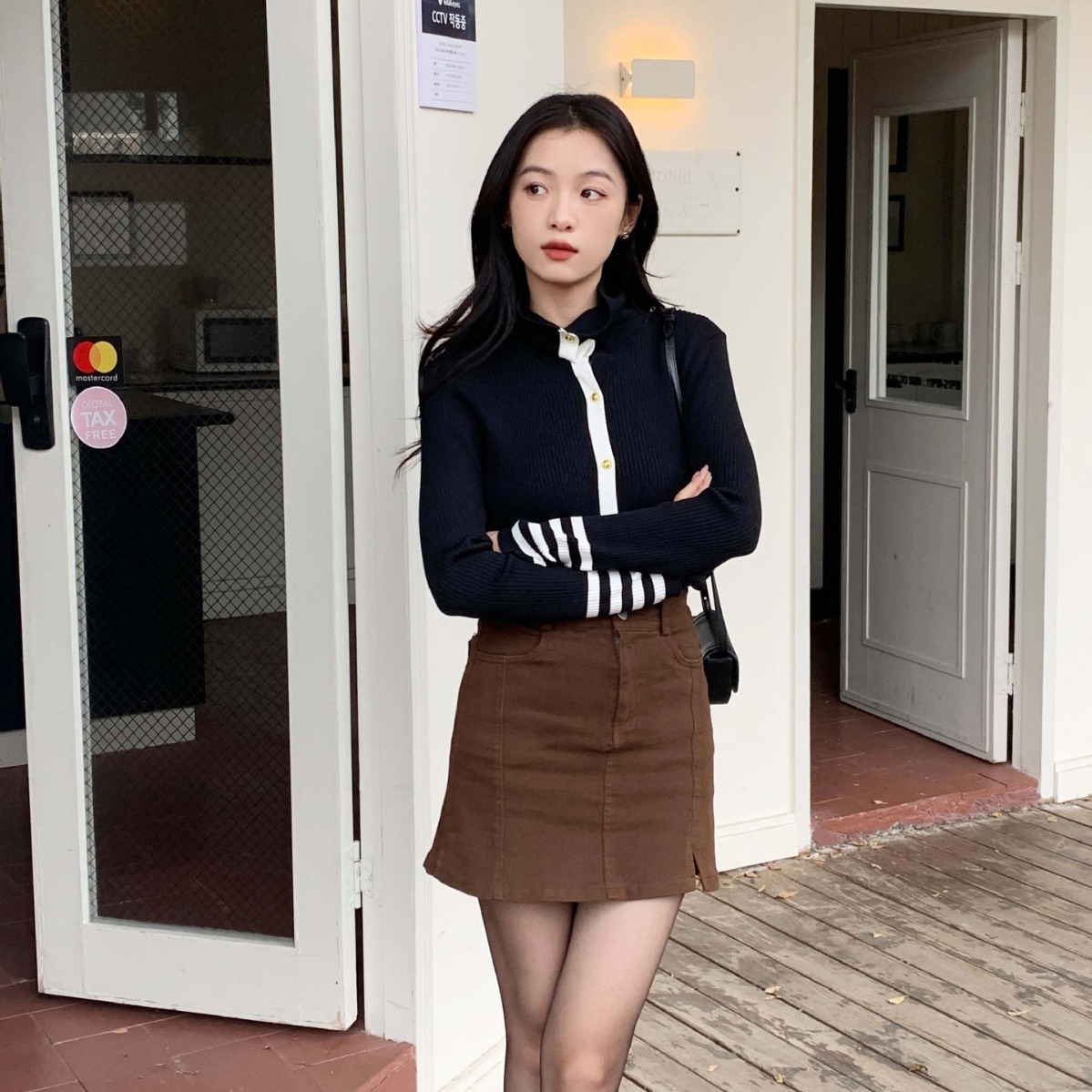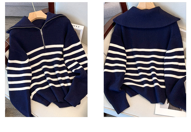 Free shipping, skin-friendly, anti-pilling striped sweater, short-sleeved knitted cardigan, contrasting color, slim design, niche base layer for women