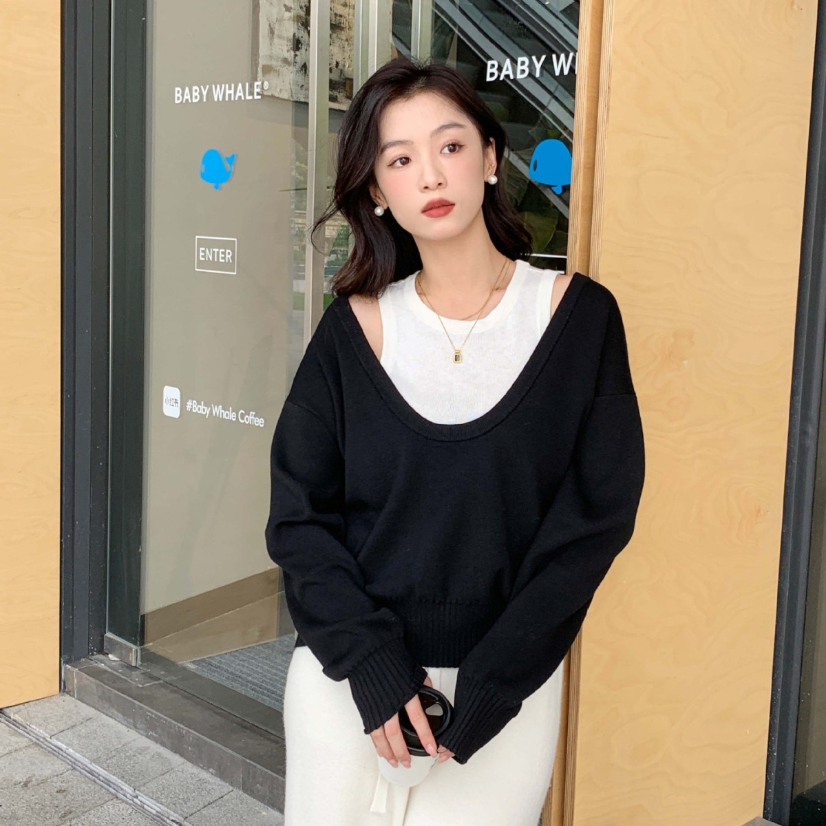 Skin-friendly wool blend large U-neck knitted sweater, a new early spring fashion minimalist style loose layering top for women