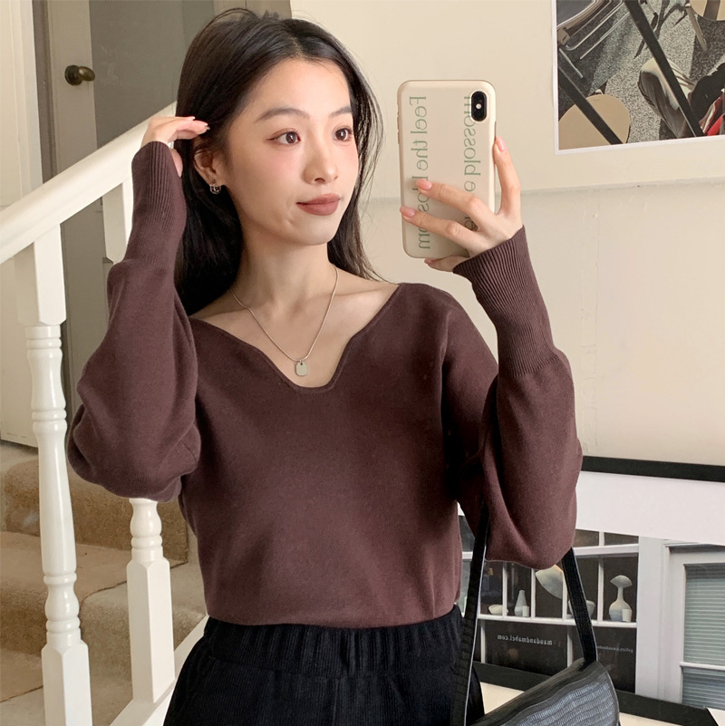 Free shipping, skin-friendly, anti-pilling, French-style one-neck sweater base layer, 2024 new autumn and winter slimming T-shirt for women