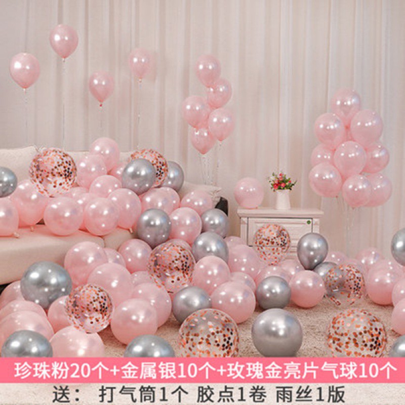 Pearl powder + metallic silver + 30 pieces of gold sequins - balloons + air cylinders + ribbons + dispensing glue