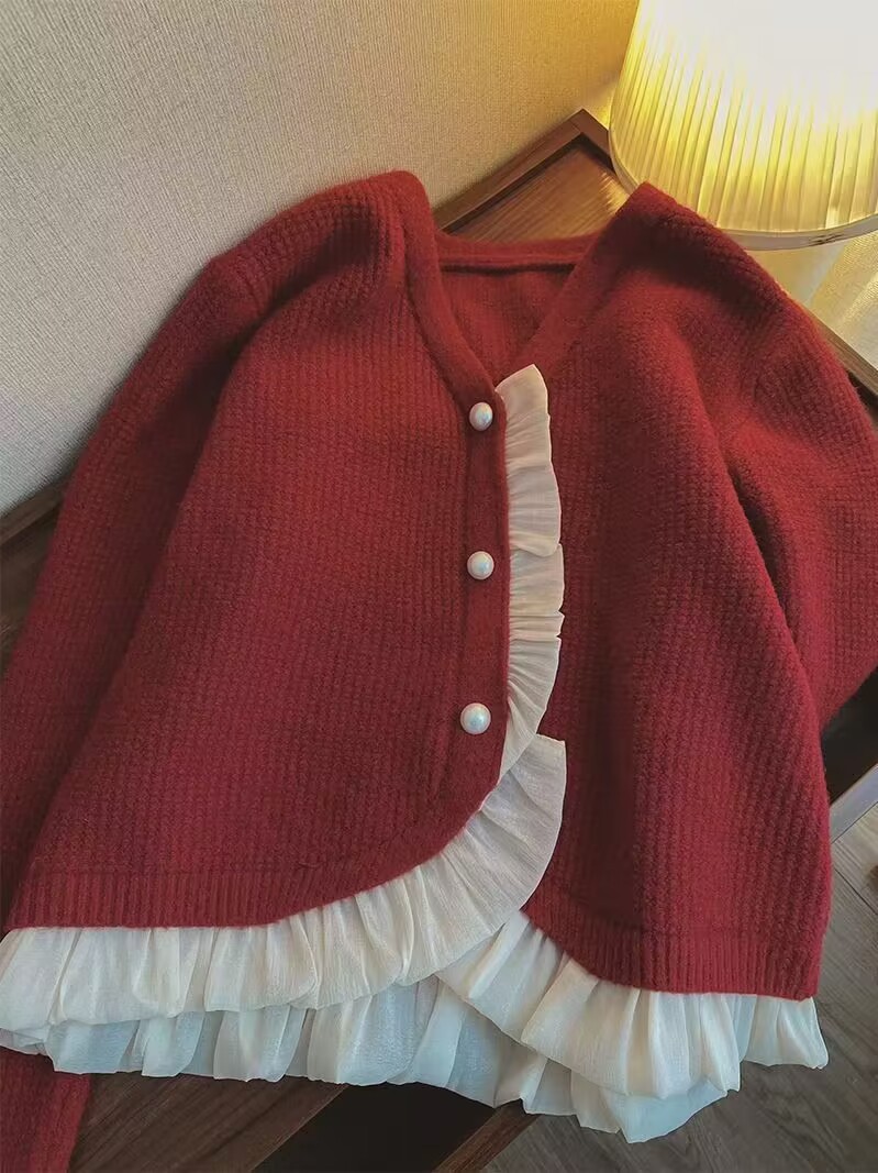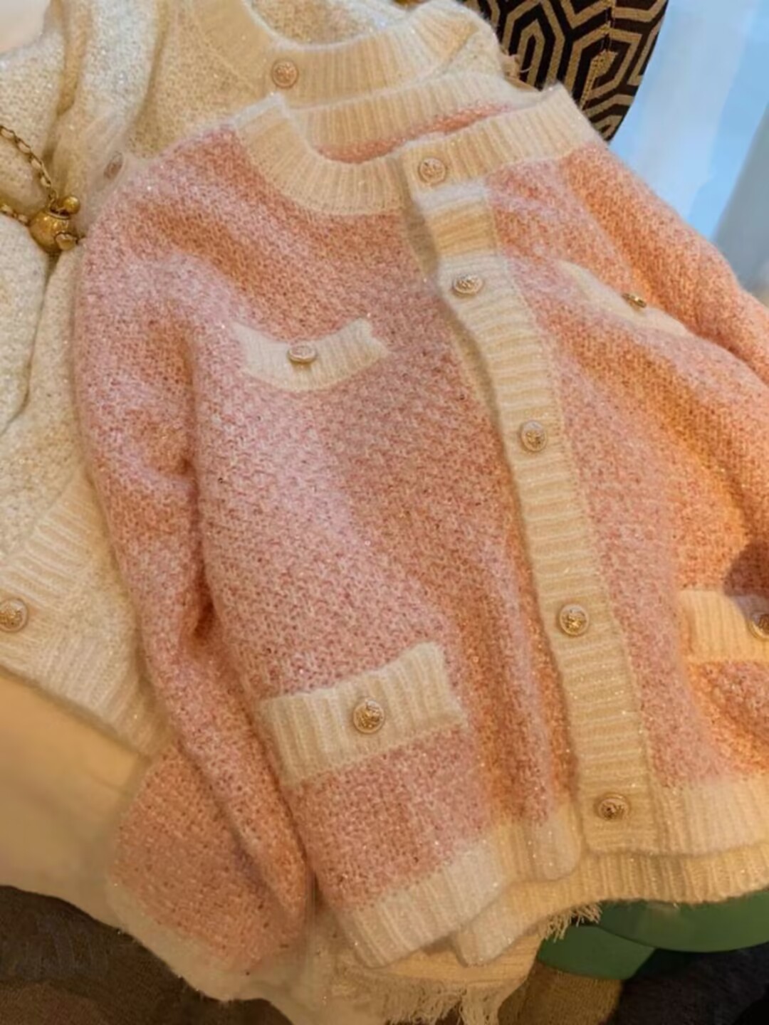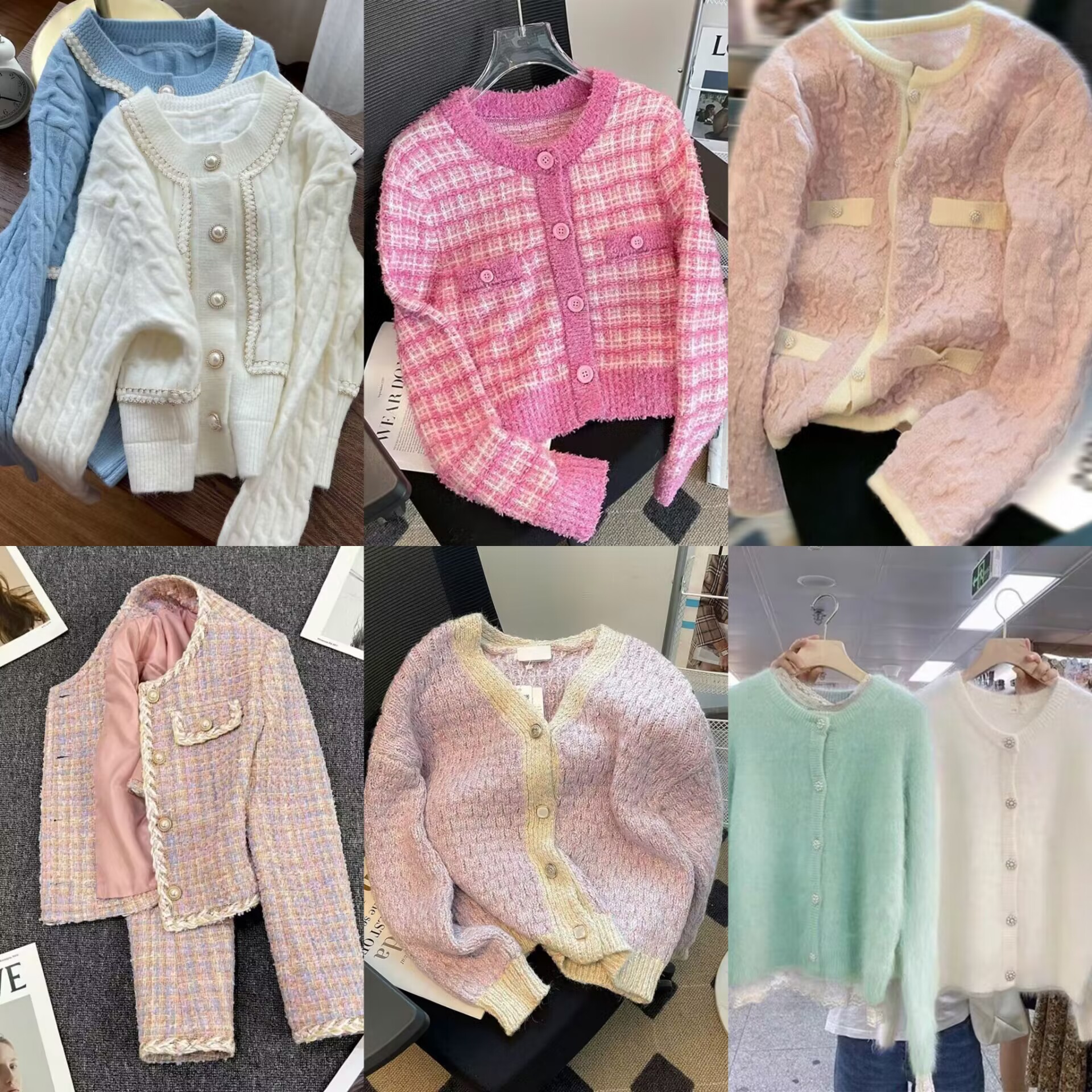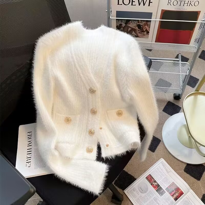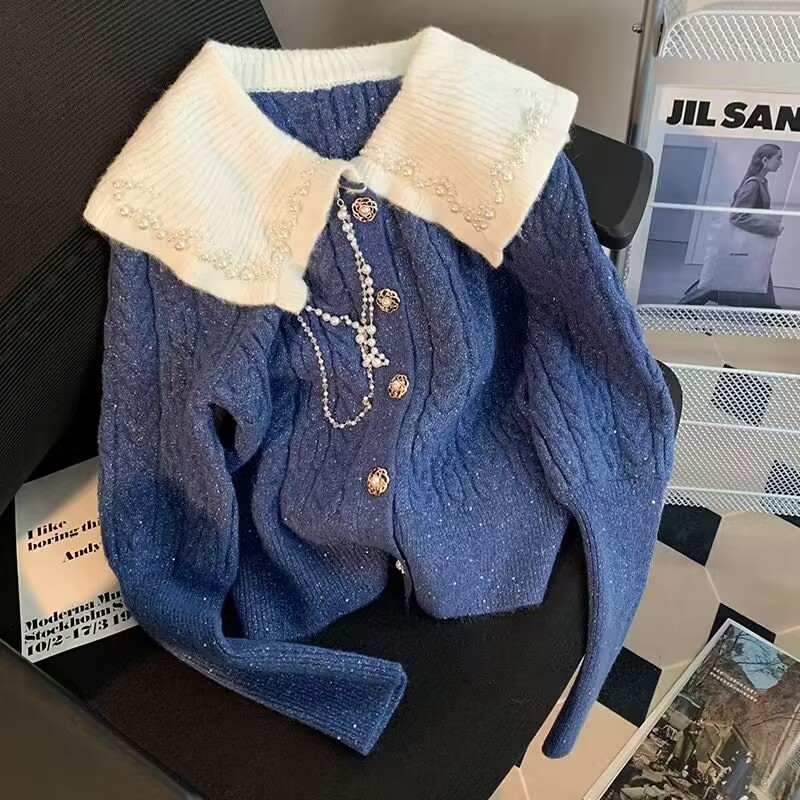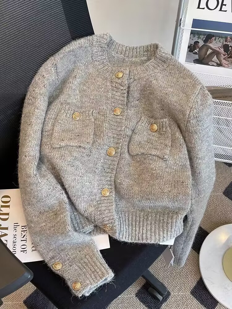 French chanel-style short knitted sweater for women to wear outside 2025 new product. A stylish socialite pairs it with a cardigan sweater for women's live streaming
