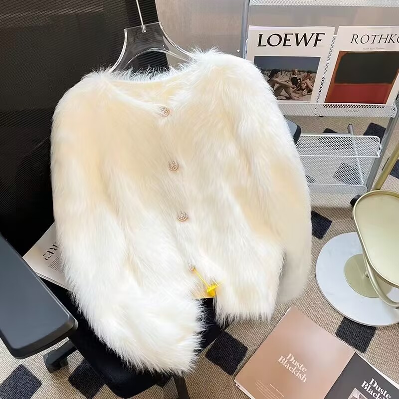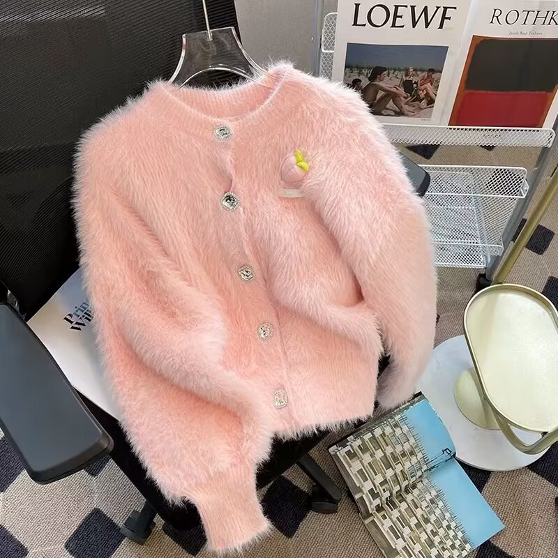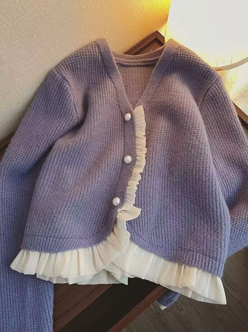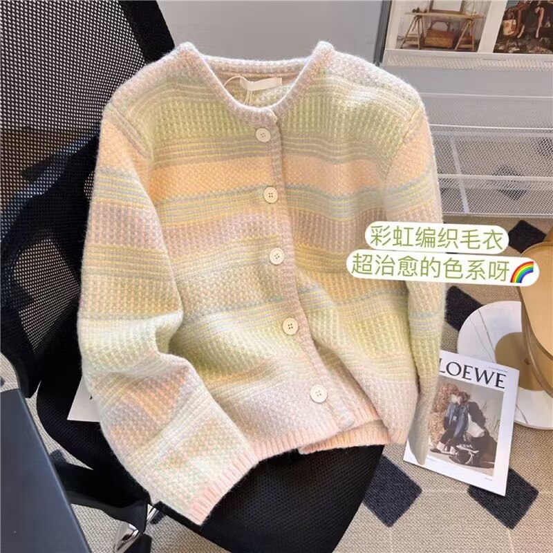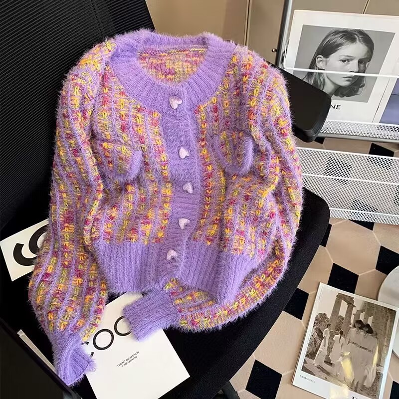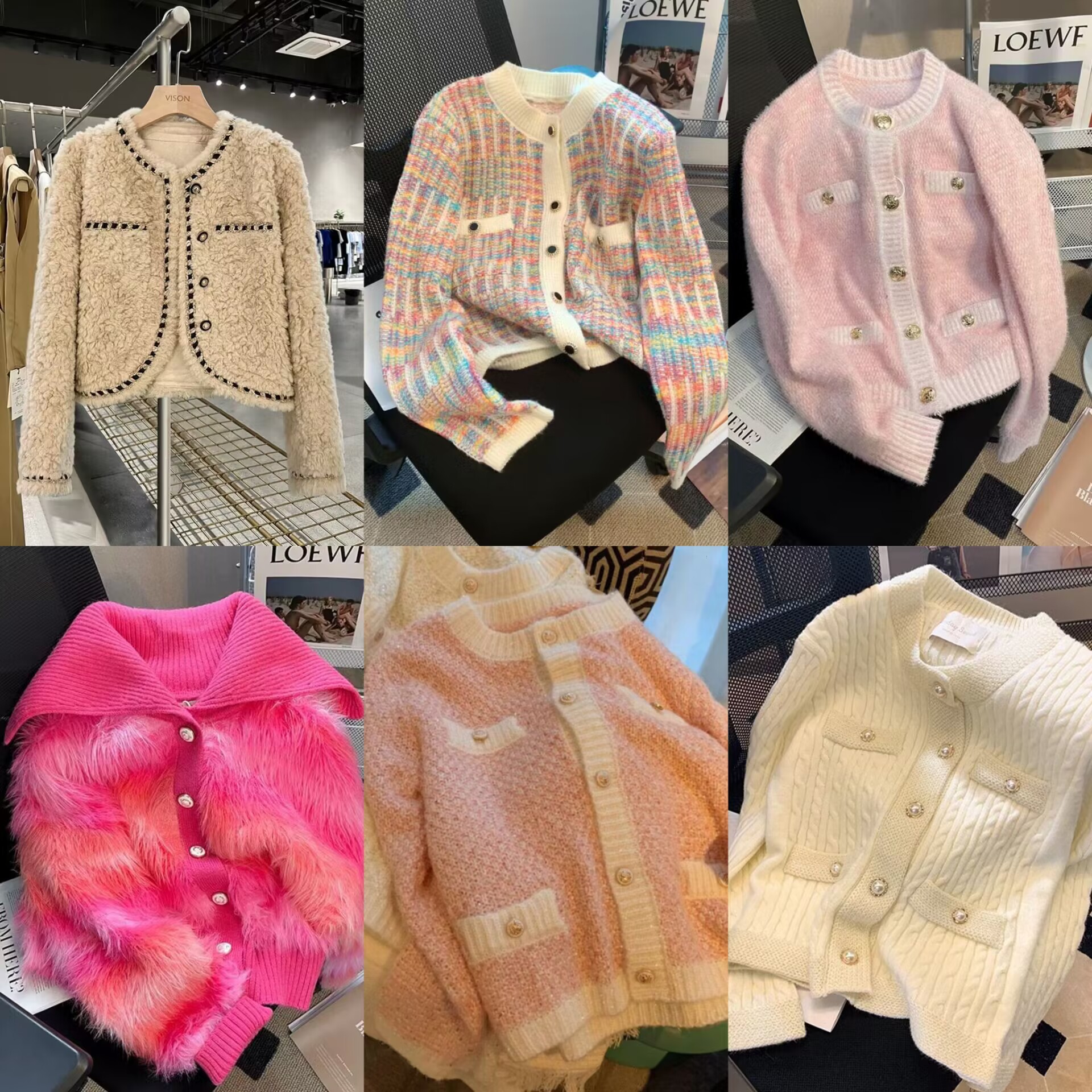 French chanel-style short knitted sweater for women to wear outside 2025 new product. A stylish socialite pairs it with a cardigan sweater for women's live streaming