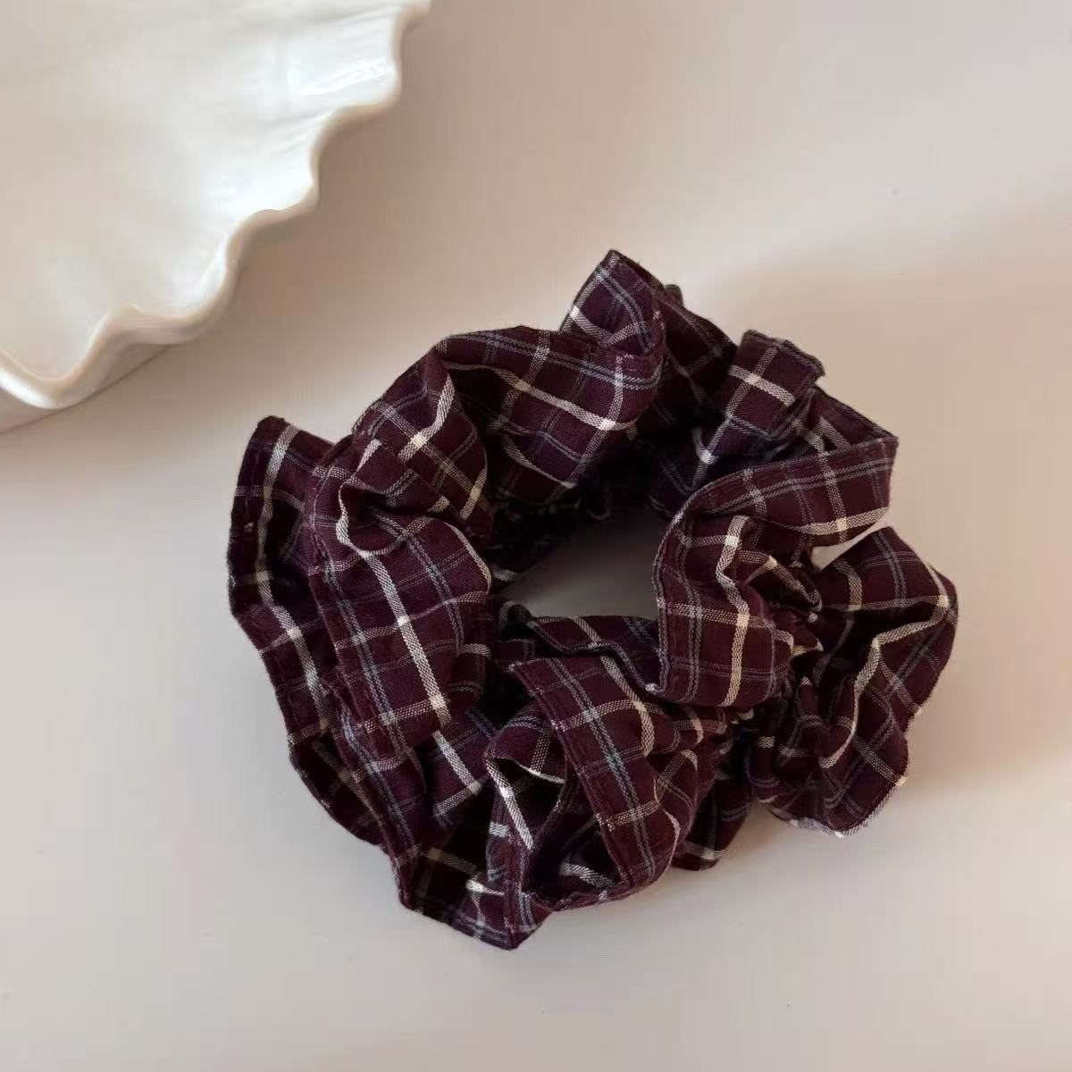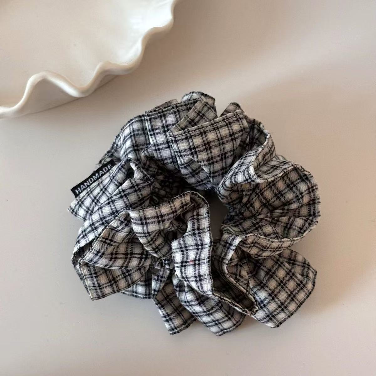 French retro checkered waist hair band, double-layer large intestine hair band, elegant ponytail hair tie