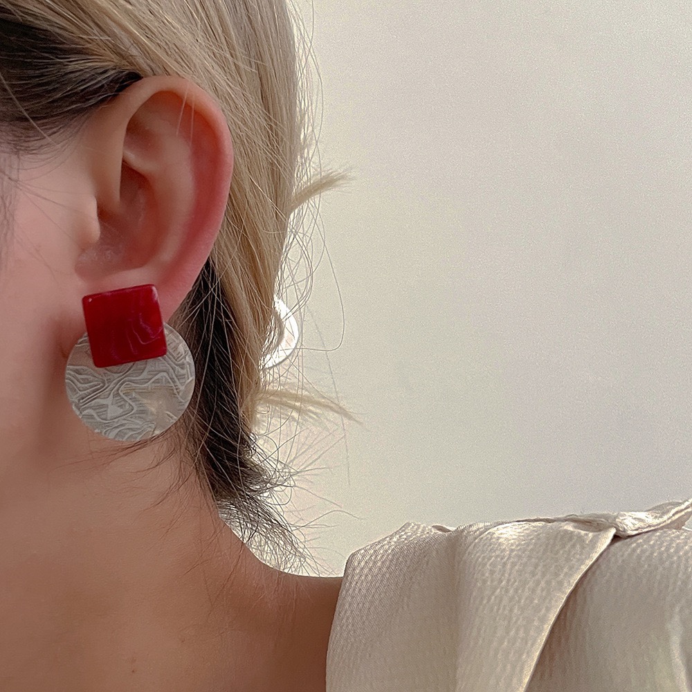 French retro design acrylic geometric earrings, women's s925 silver needle high-end stud earrings, versatile earrings