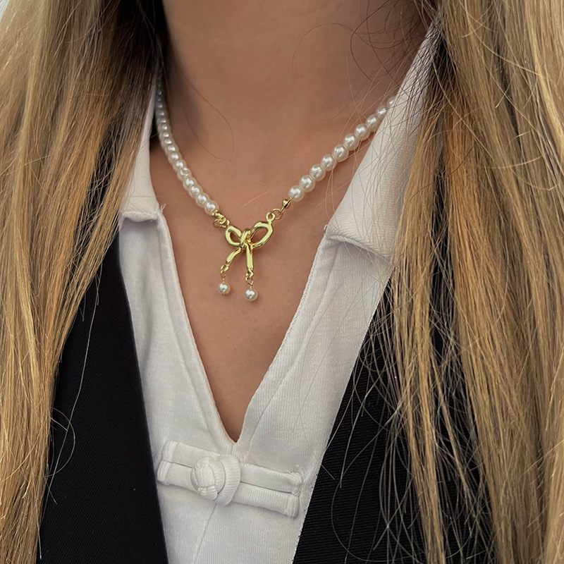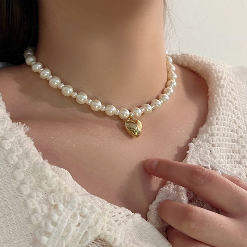 French retro double-layer pearl necklace, a light luxury, niche and high-end accessory for women, fashionable choker neck collarbone chain