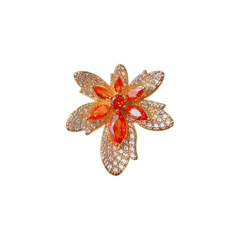 French retro, exquisite, fashionable, light luxury and high-end feel, full diamond maple leaf button brooch style, simple and individual, versatile, super dazzling brooch
