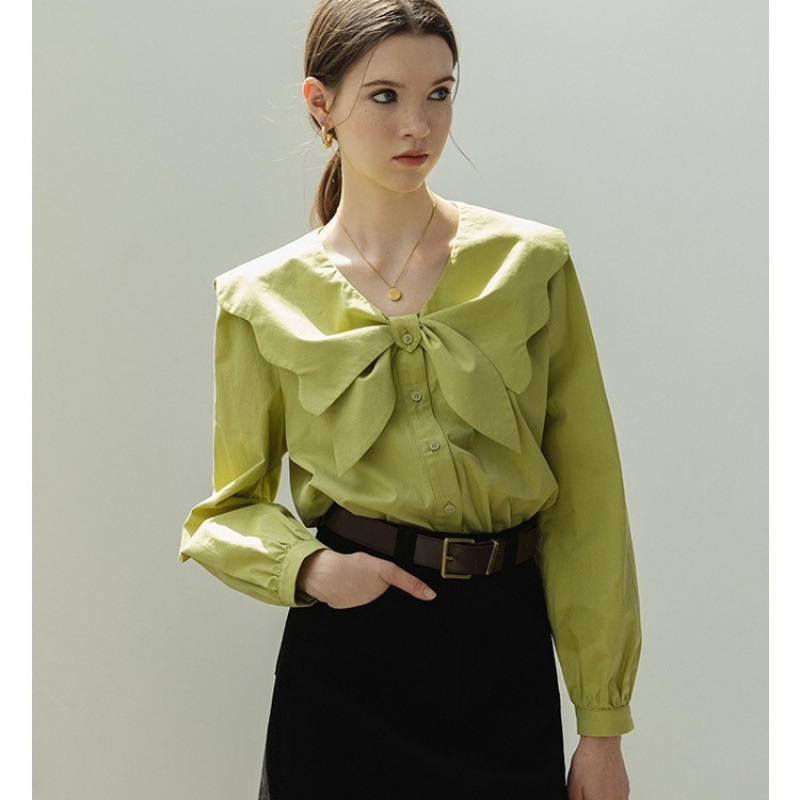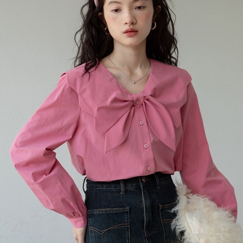 French retro long-sleeved shirt for women, new Spring 2024 Korean-style shirt, loose and versatile, petite slimming top