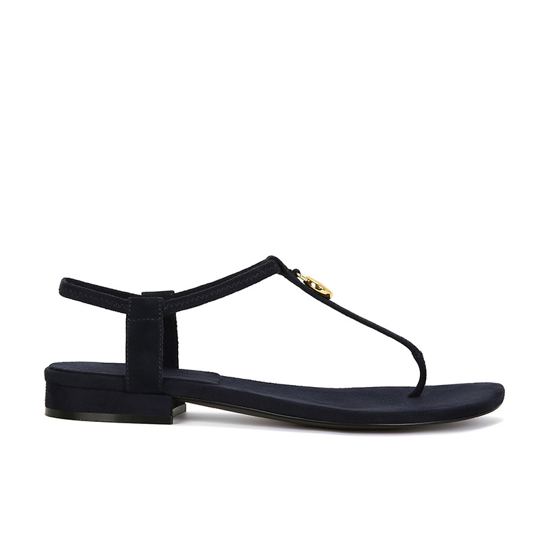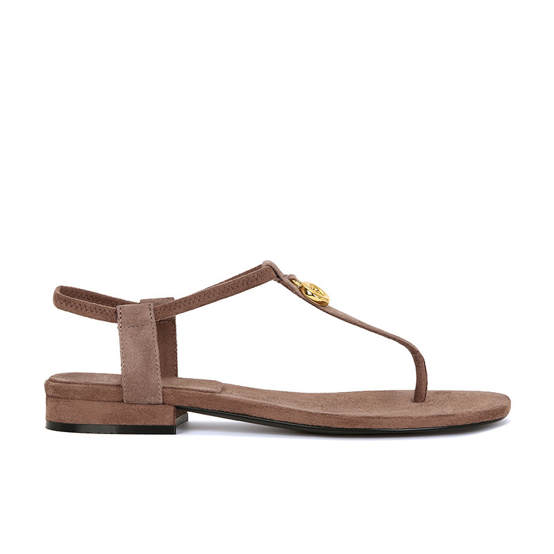 French retro metal buckle rhinestone toe flat sandals, versatile T-shaped Roman beach flip-flops, women's summer outerwear
