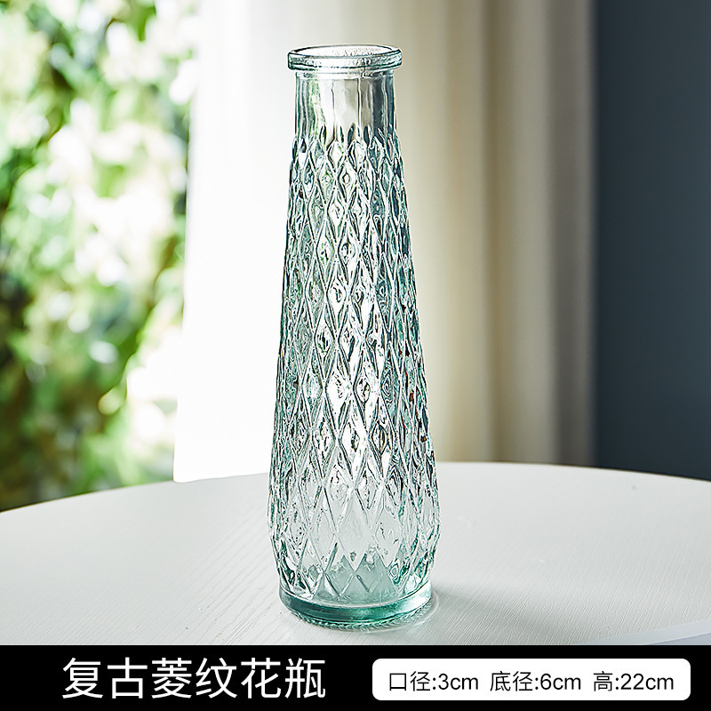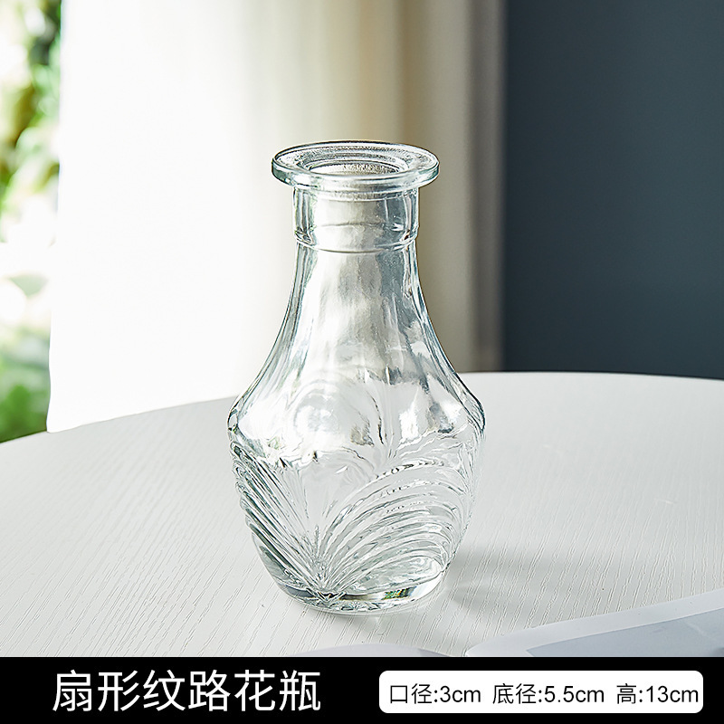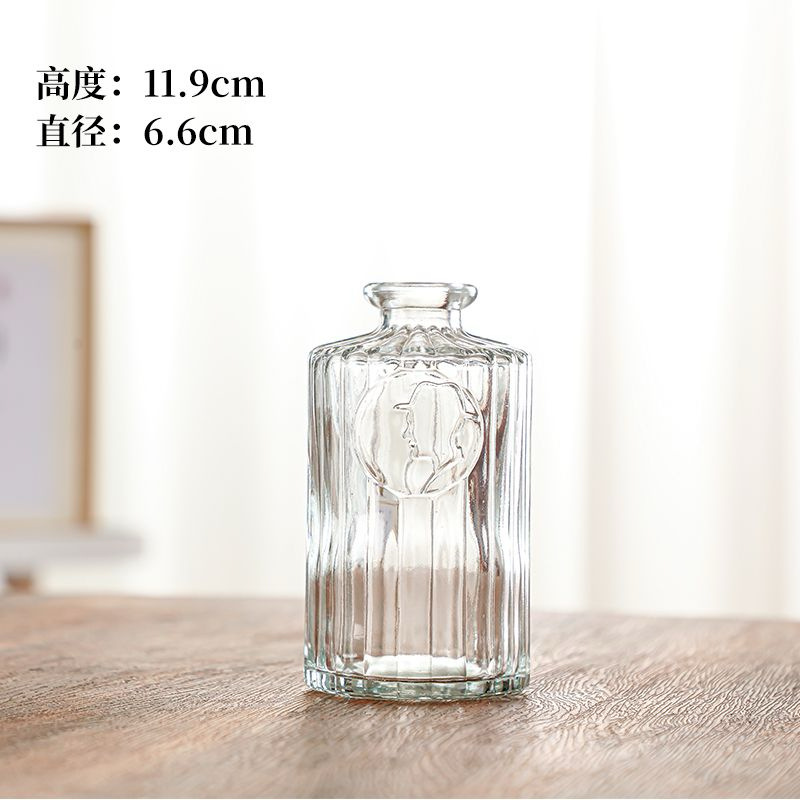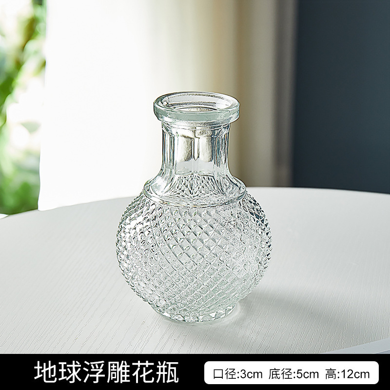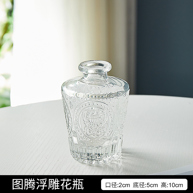 French retro small vase with glass relief, mini cross-border vase, ins style transparent hydroponic flower arrangement, living room decoration