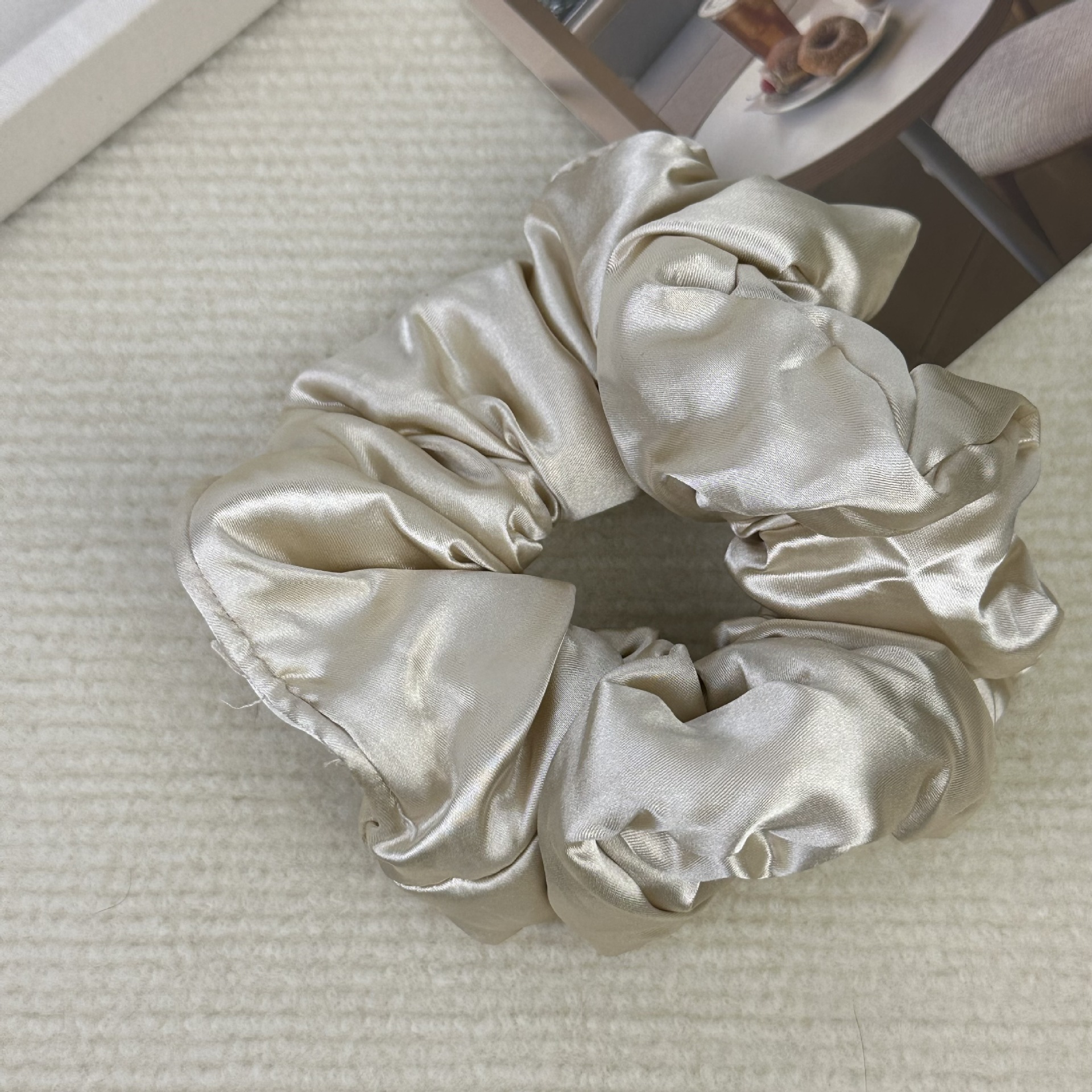 French-style laid-back satin pillow, large intestine hair band, high-end retro large solid color fabric pleated hair band and hair accessory