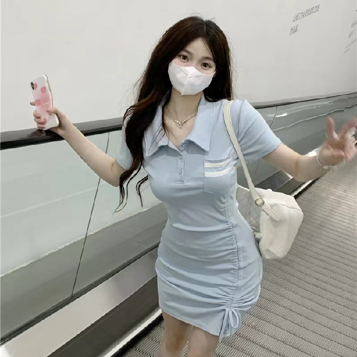 French-style, pure and sweet, petite, pure and sensual, hot girl, gentle style, high-end, hip-hugging, polo collar dress for women in summer