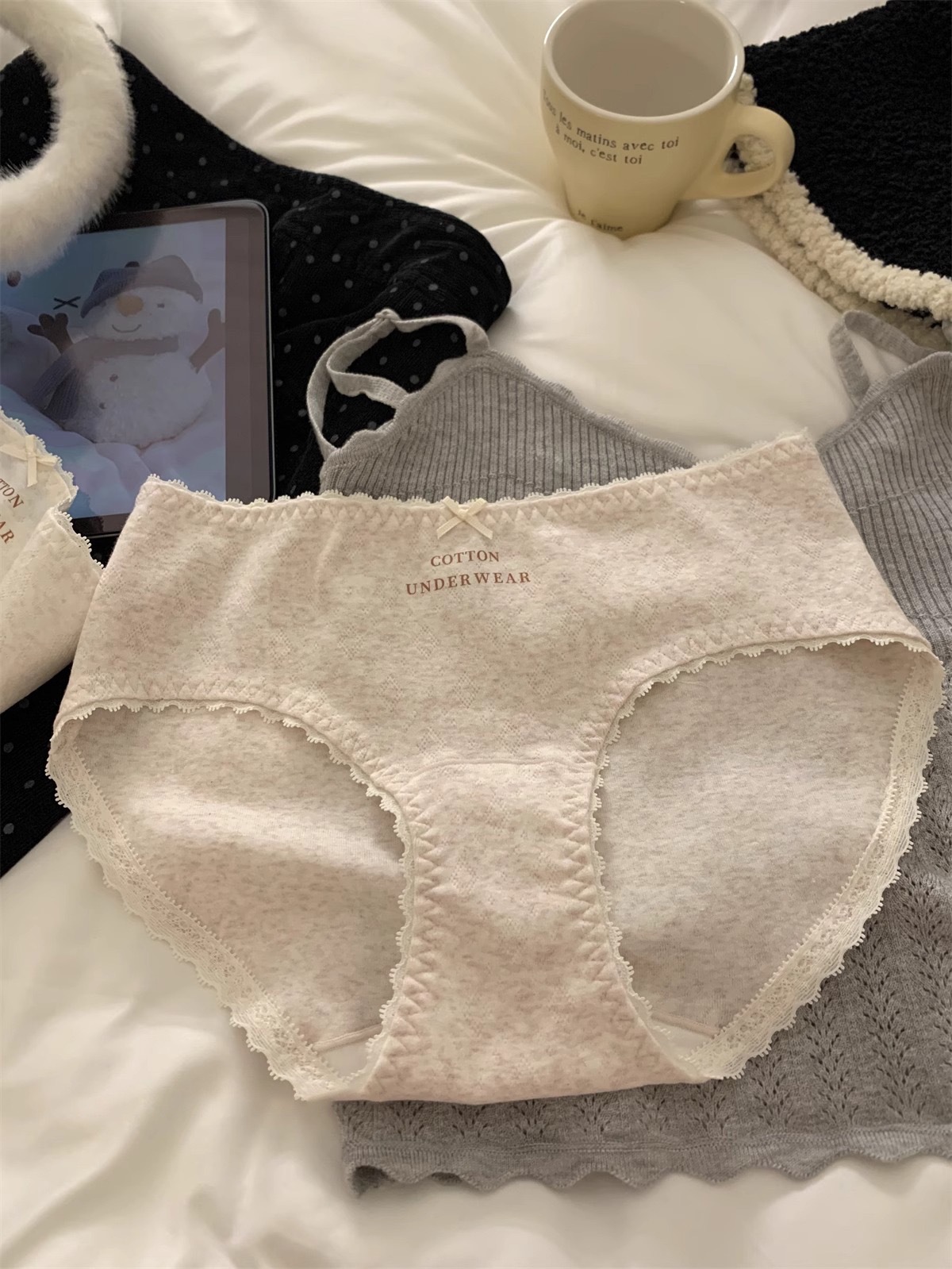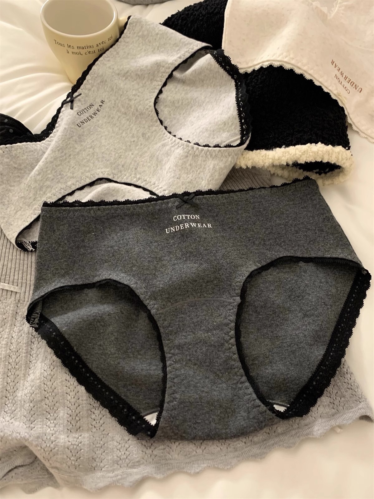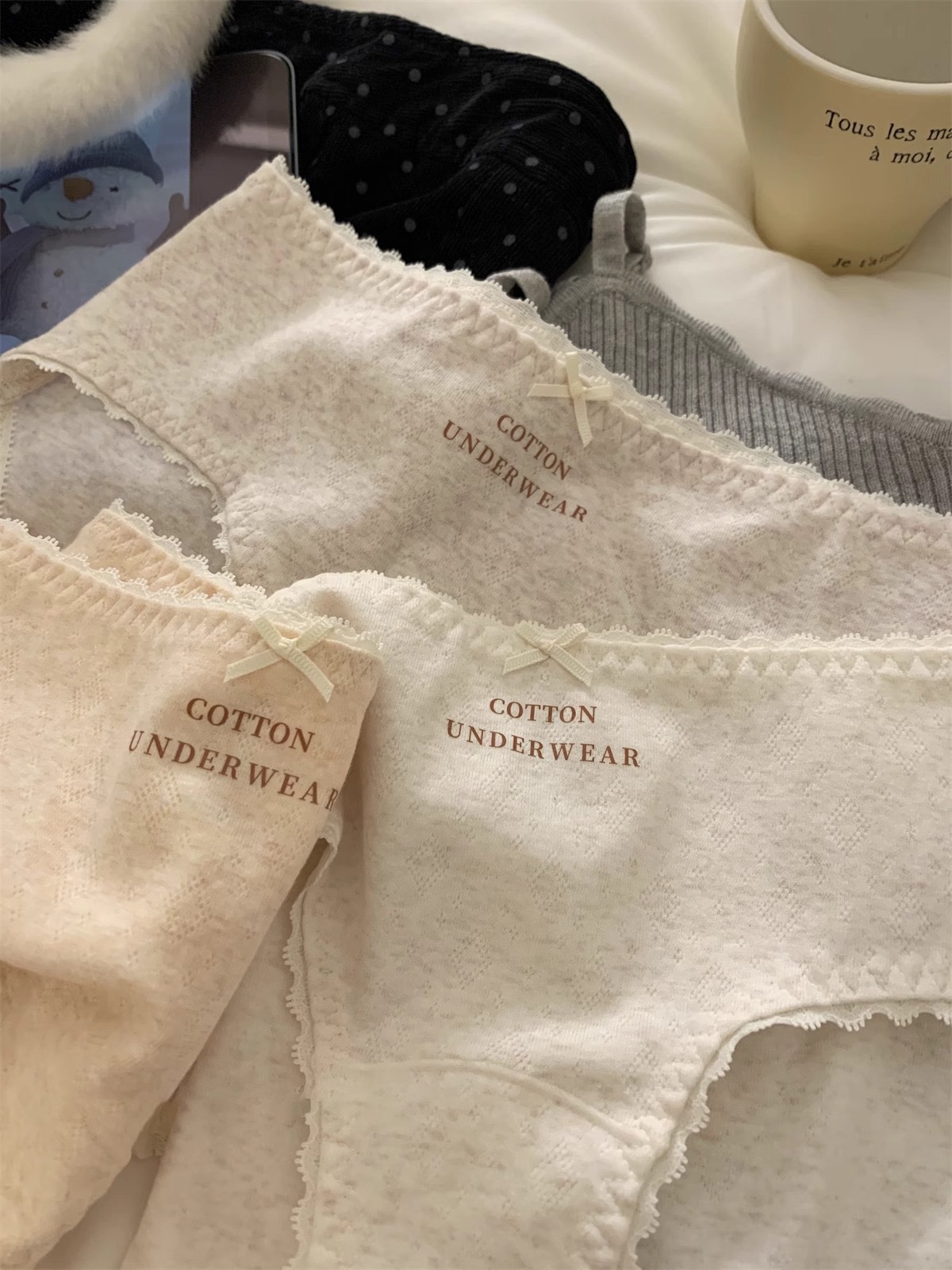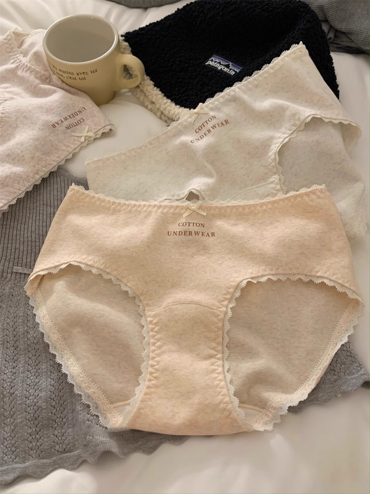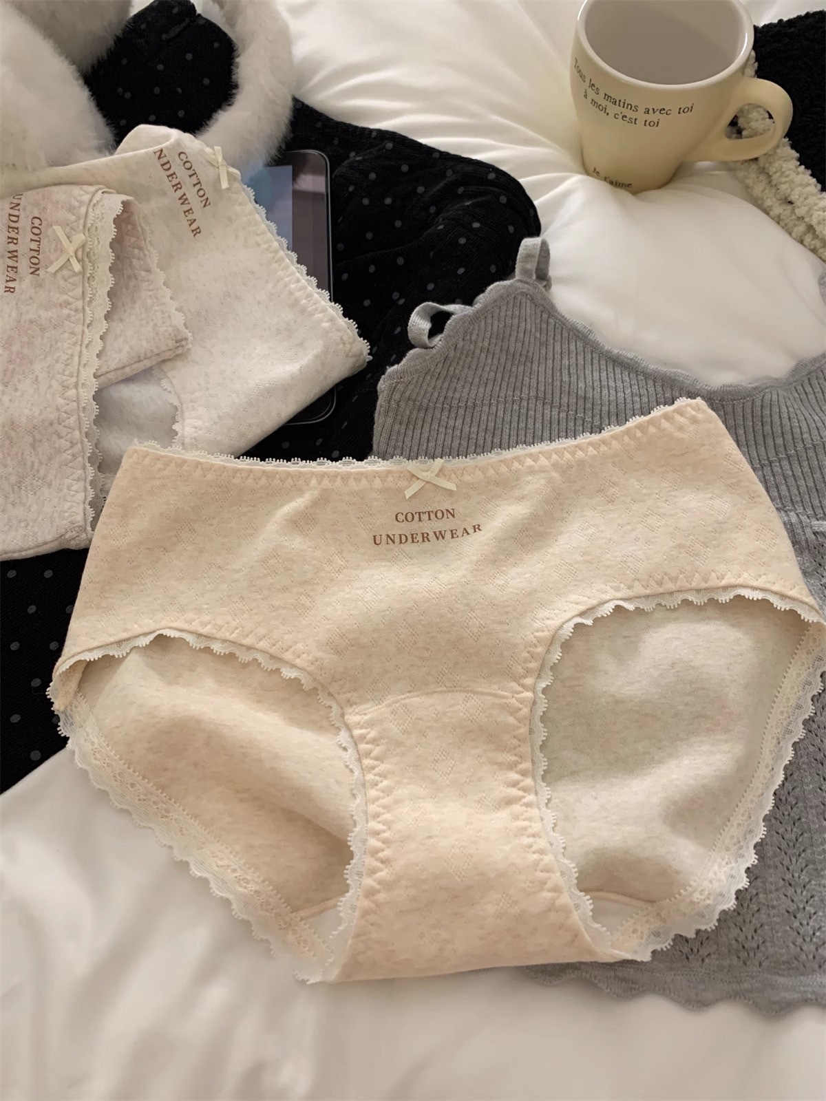 French-style women's underwear, pure cotton 10A antibacterial extended crotch, comfortable mid-waist bag, seamless hip, all-cotton crotch women's briefs
