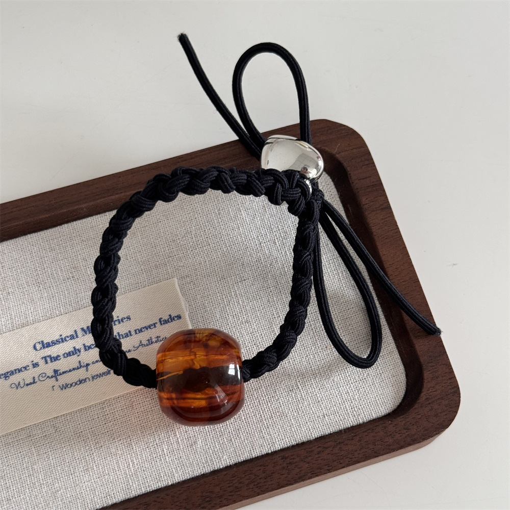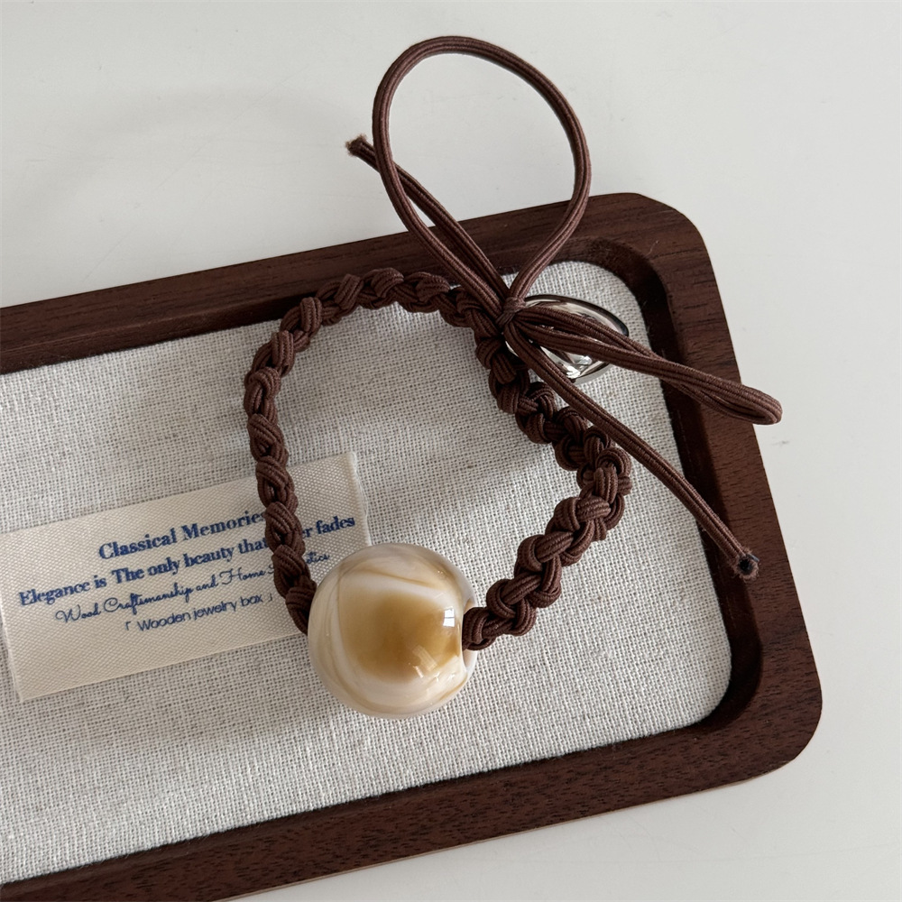 Fresh and cute heart-shaped round bead hair tie, woven rubber band, women's hair tie, high-elasticity hair band leather