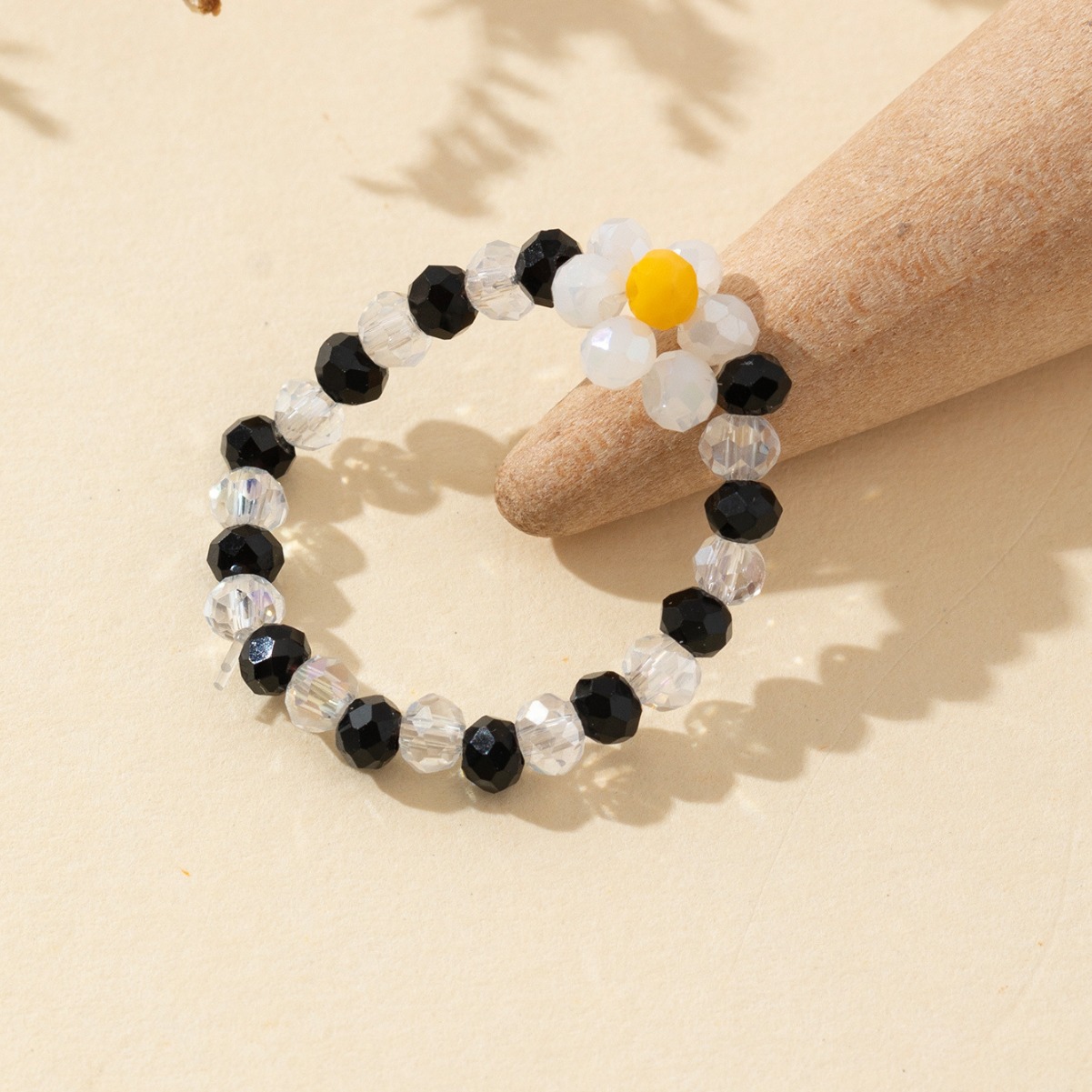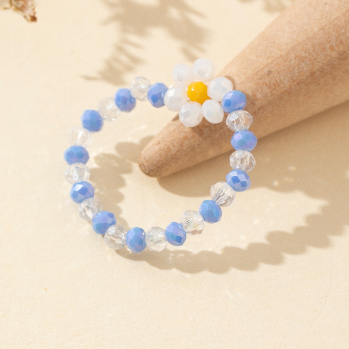 Fresh and elegant elastic rope plum blossom color crystal ring for women, new fashionable and versatile, niche and individual ring jewelry wholesale