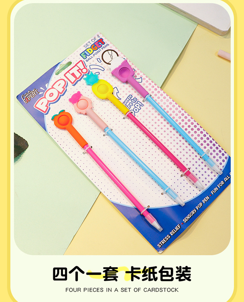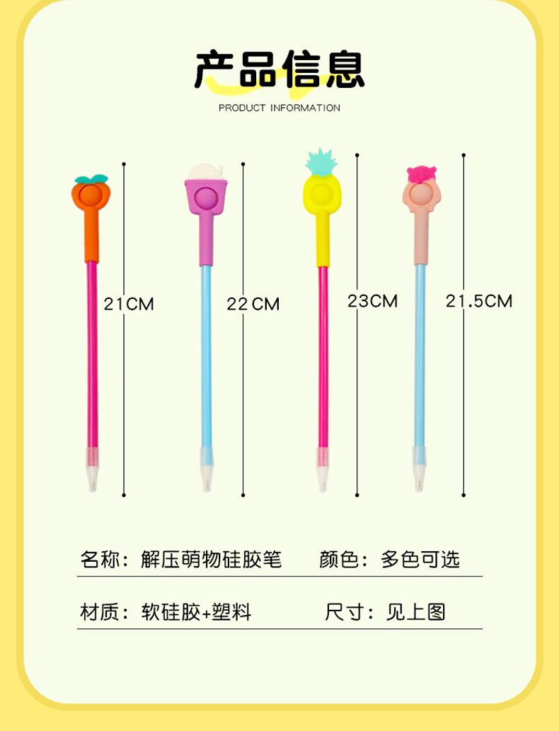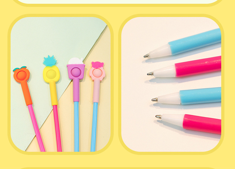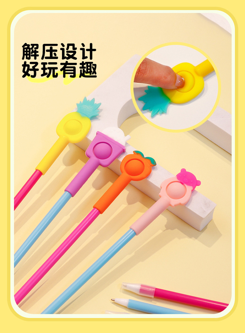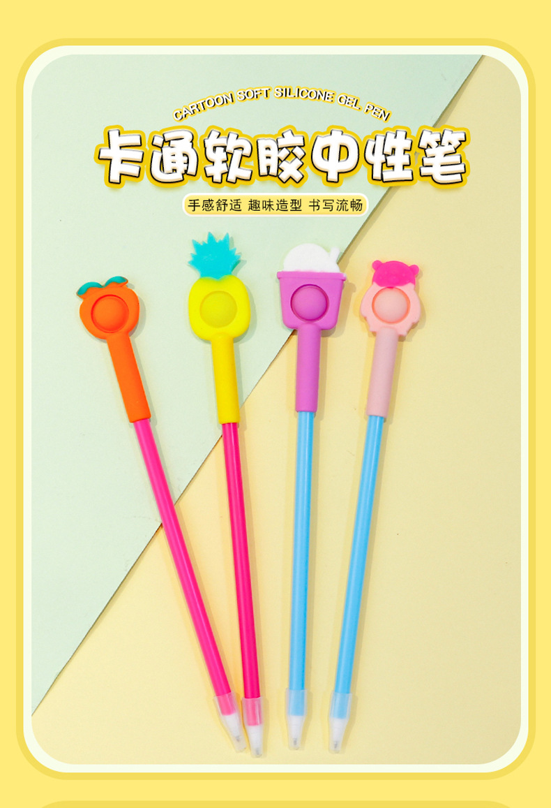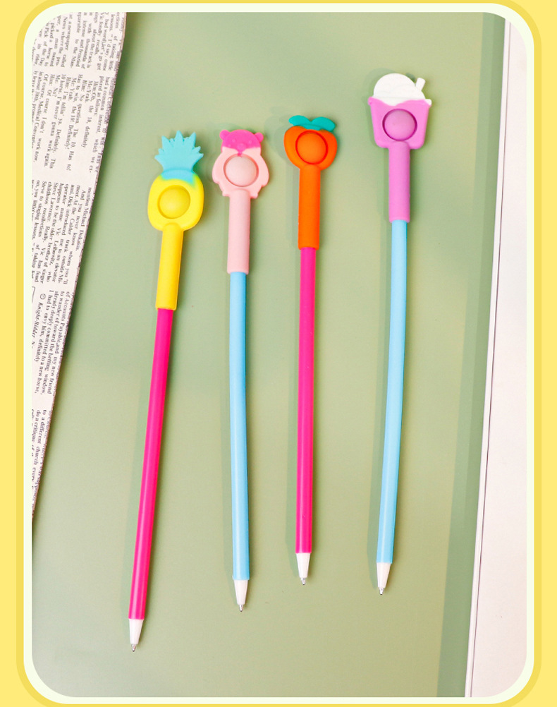 Fruit-themed silicone bubble pens, children's stress-relieving pens, 0.5mm black gel pens, wholesale and in stock, event gifts