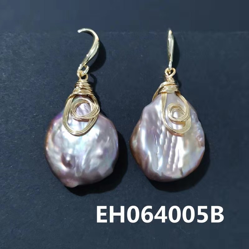 Fudora Shijia 14k gold-plated Baroque freshwater pink and purple pearl stud earrings, retro French pearl earrings, retro Hong Kong-style earrings