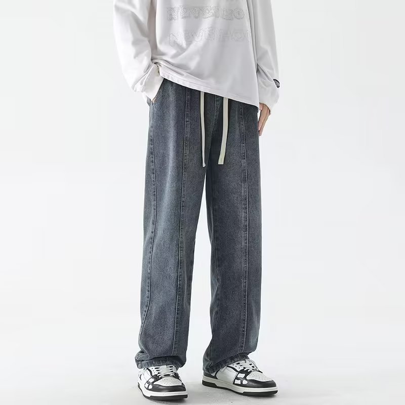 FUIV retro washed drape loose wide-leg American grey gradient stretched-waist men's casual straight-leg trousers