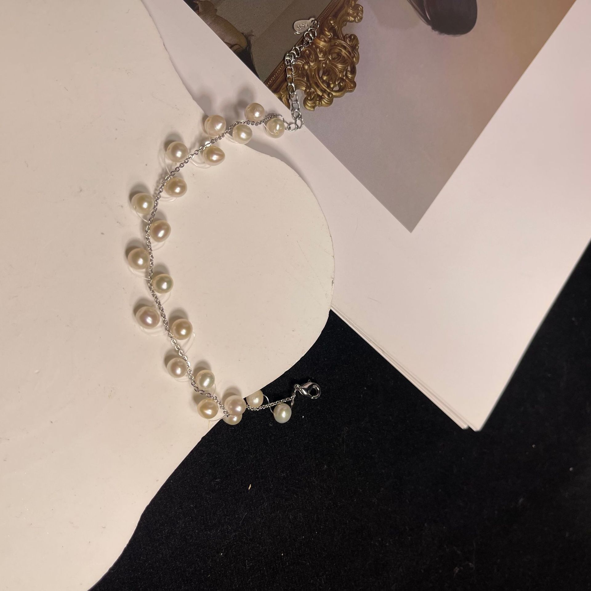 "Full Sky Stars Natural Pearl Bracelet, 925 sterling silver, fashionable design, forest-themed, super ethereal and sweet women's silver chain decoration, handcrafted.