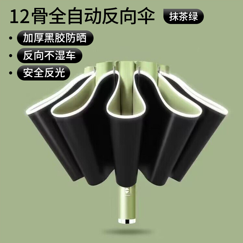 12-bone fully automatic sturdy anti-storm reverse umbrella [Matcha Green] vinyl double umbrella