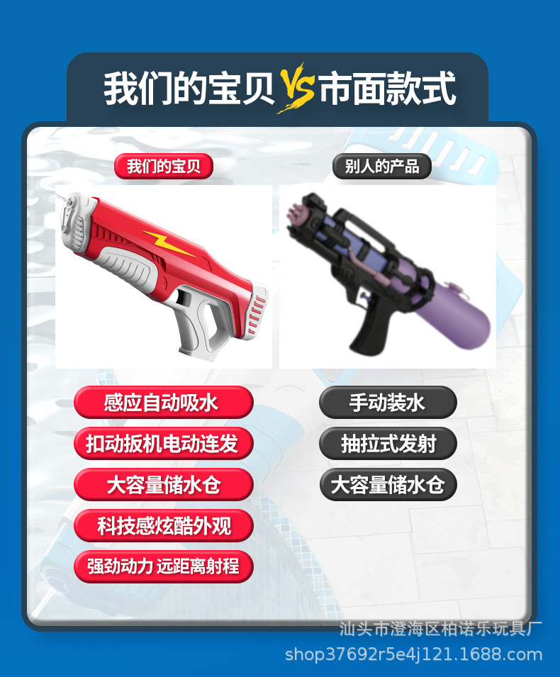 Fully automatic water suction electric water gun toy, children's high-pressure powerful water spray gun, continuous fire water fight magic tool for boys