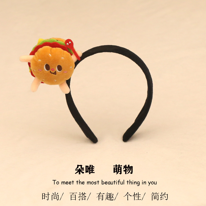 Fun simulation hot dogs, hamburgers, French fries, hair bands, cartoon plush children, babies, creative and funny costumes, performance hair accessories