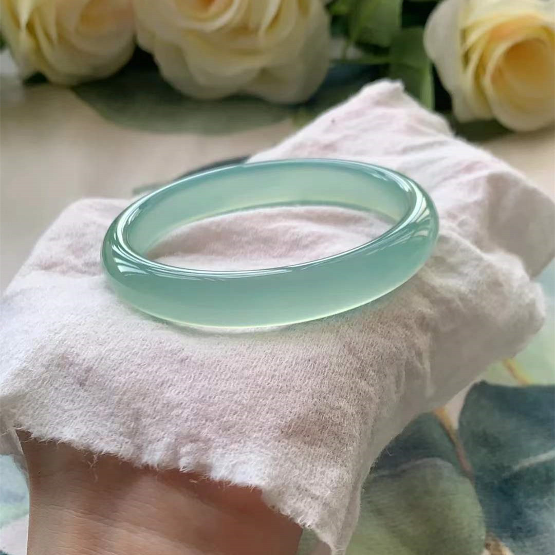 Fuxia Ice type Oil blue chalcedony Far Mountain Dark Blue Fine Thick bracelet, new European and American agate women's jade bracelet, jade bracelet gift
