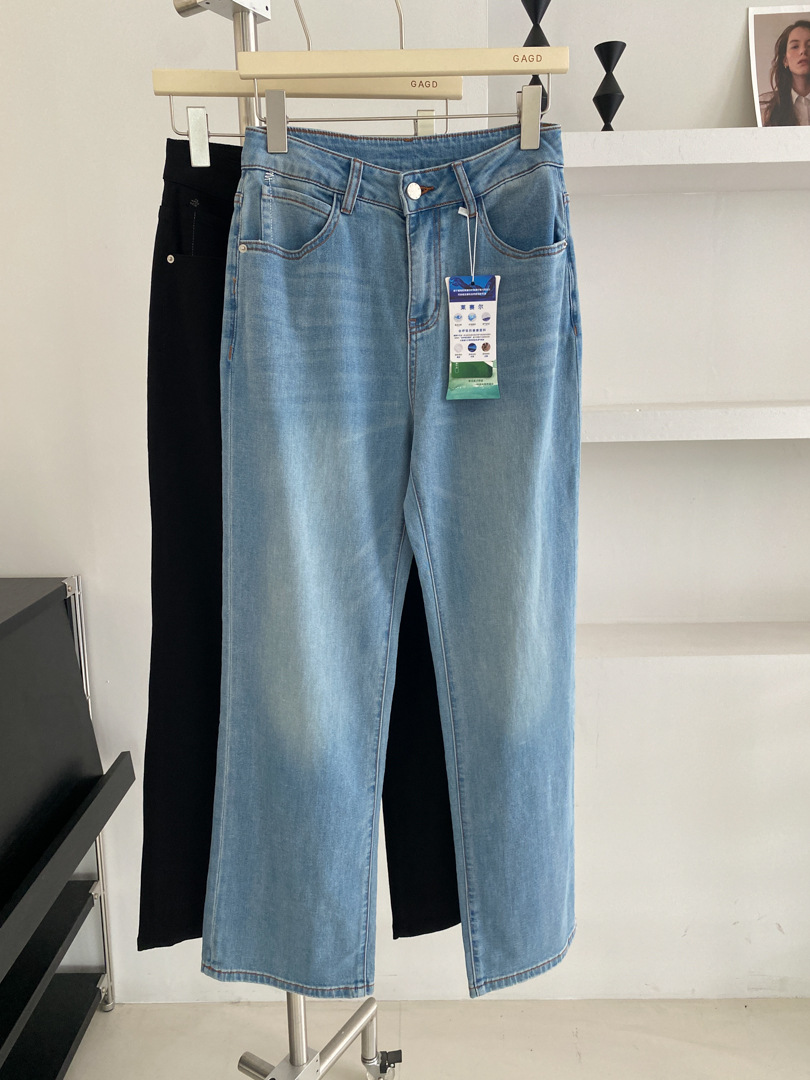 GAGD Linen Tencel high-waisted straight-leg jeans for women, summer stretch, slimming, loose, petite straight-leg 9-inch pants