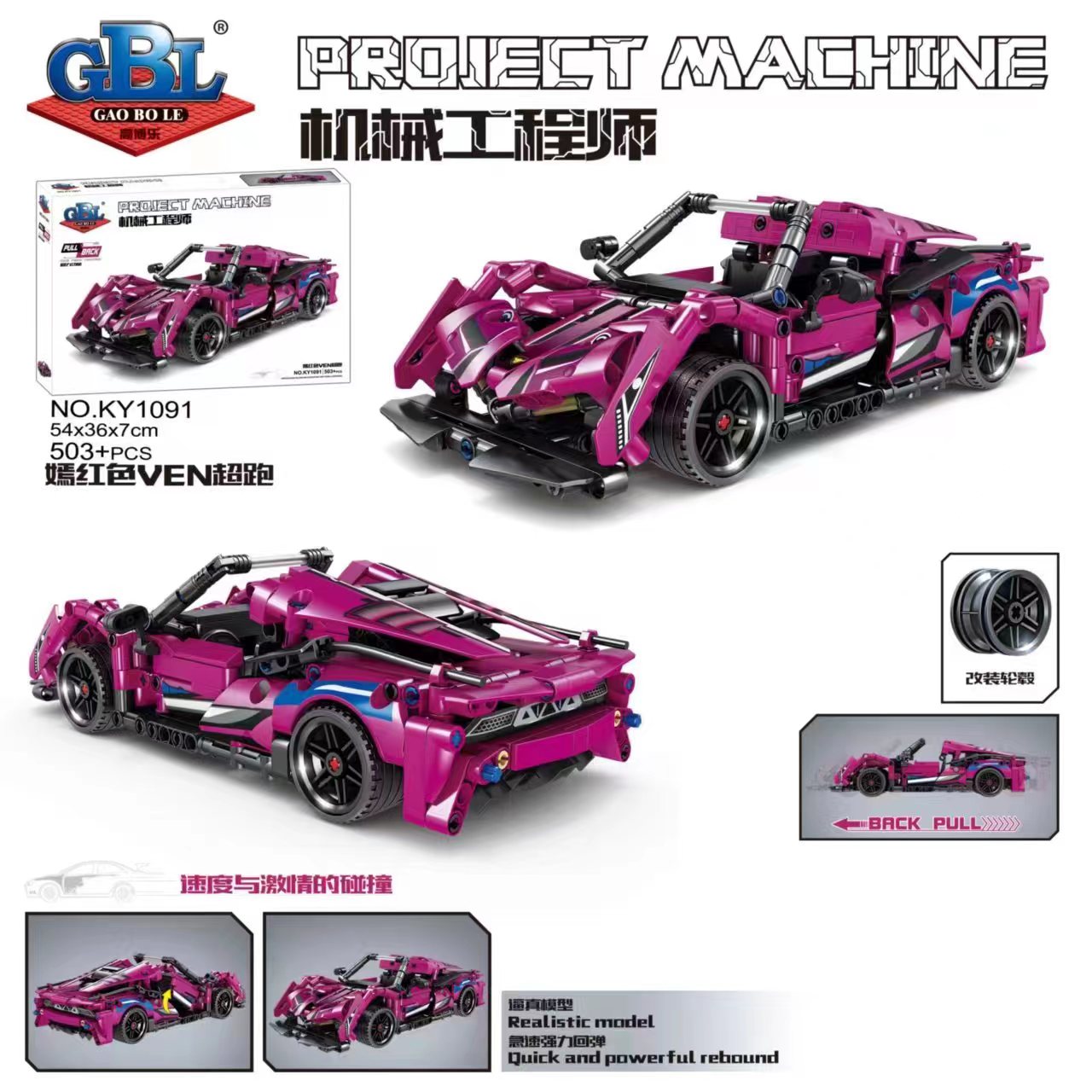 Gao Bo Leyan's red VEN supercar engineering rebound modified racing car model, small particle sports car boy building block toy