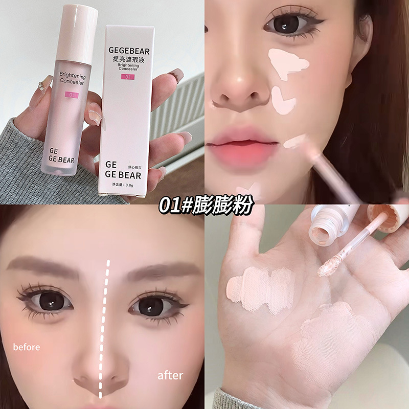 Gege bear Brightening Concealer is light and hydrating, covering acne marks, tear troughs, dark circles, and providing long-lasting water resistance without powder sticking
