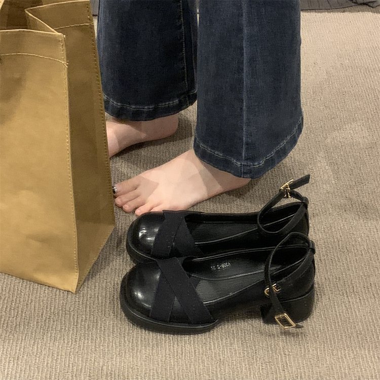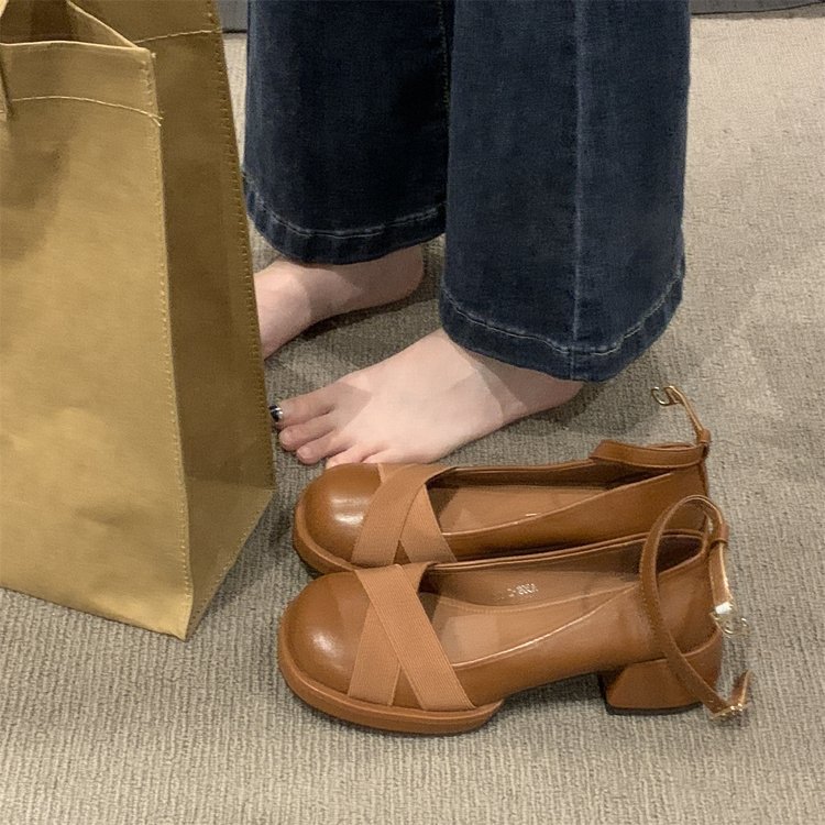 Gentle evening breeze single-shoe women's shoes 2023 Spring and Autumn new style, thick-heeled round-toe French style with skirt mid-heel ladle shoes