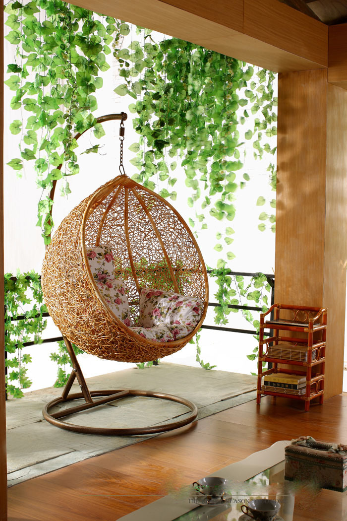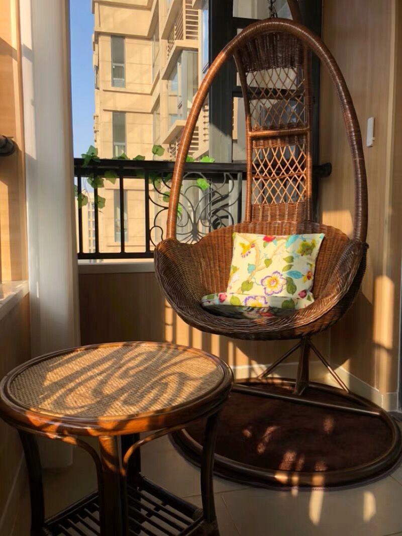 Coffee-colored real rattan latte art comes with a cushion and carpet