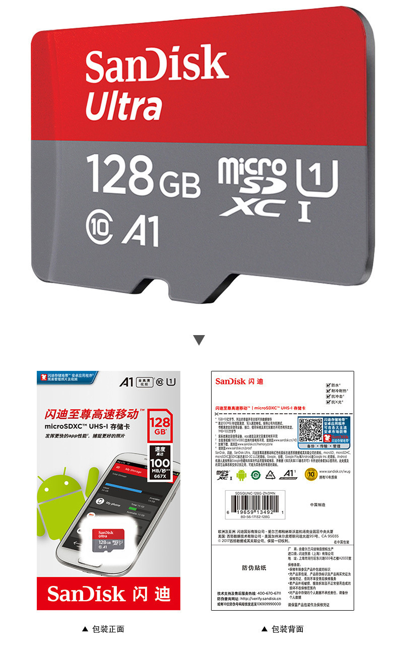 Genuine Sandisk TF memory card A1 high-speed 16G, 32G, 64G, 128G, suitable for dashcam monitoring memory cards