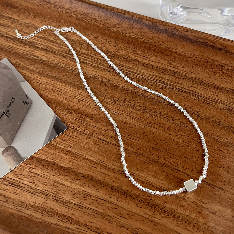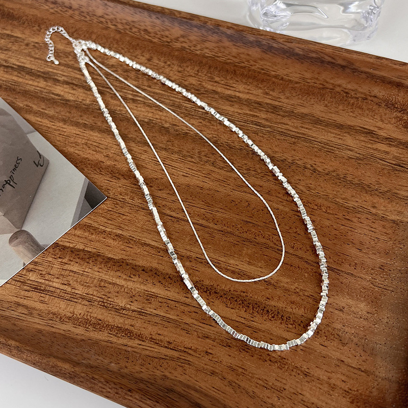 Geometric silver-shaped square heart-shaped necklace, a niche design of light luxury irregular collarbone chain, a trend of layered necklaces