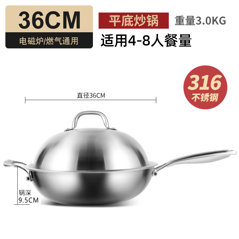 36cm flat bottom with lid + steaming rack [Uncoated 316 material]