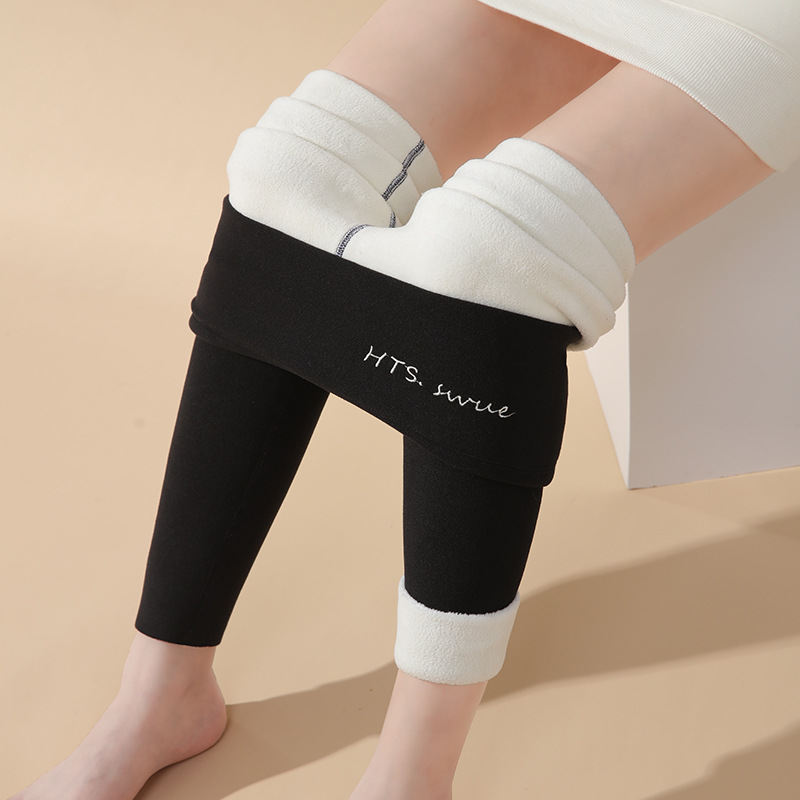German fleece leggings for autumn and winter, fleece and thickened thermal pants, lamb fleece cotton pants, woolen pants, high-waisted women's inner wear long Johns