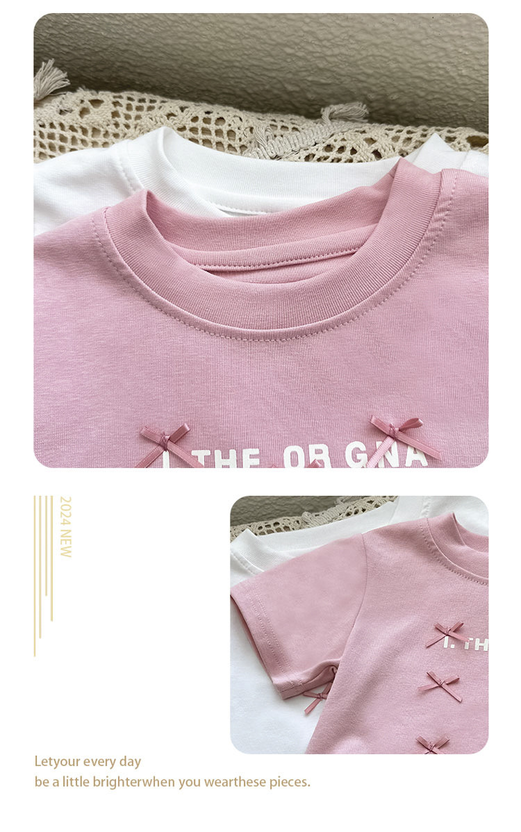 Girls' and children's Clothing 2025 Sweet Summer New Korean-style bow top Cartoon short-sleeved T-shirt Lettered Kids' trend