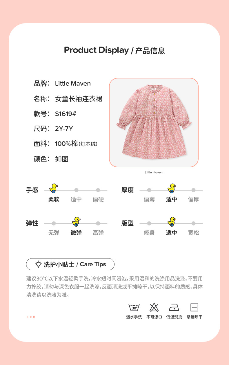 Girls' dress, autumn children's dress, new European and American pure cotton long-sleeved children's dress, princess dress
