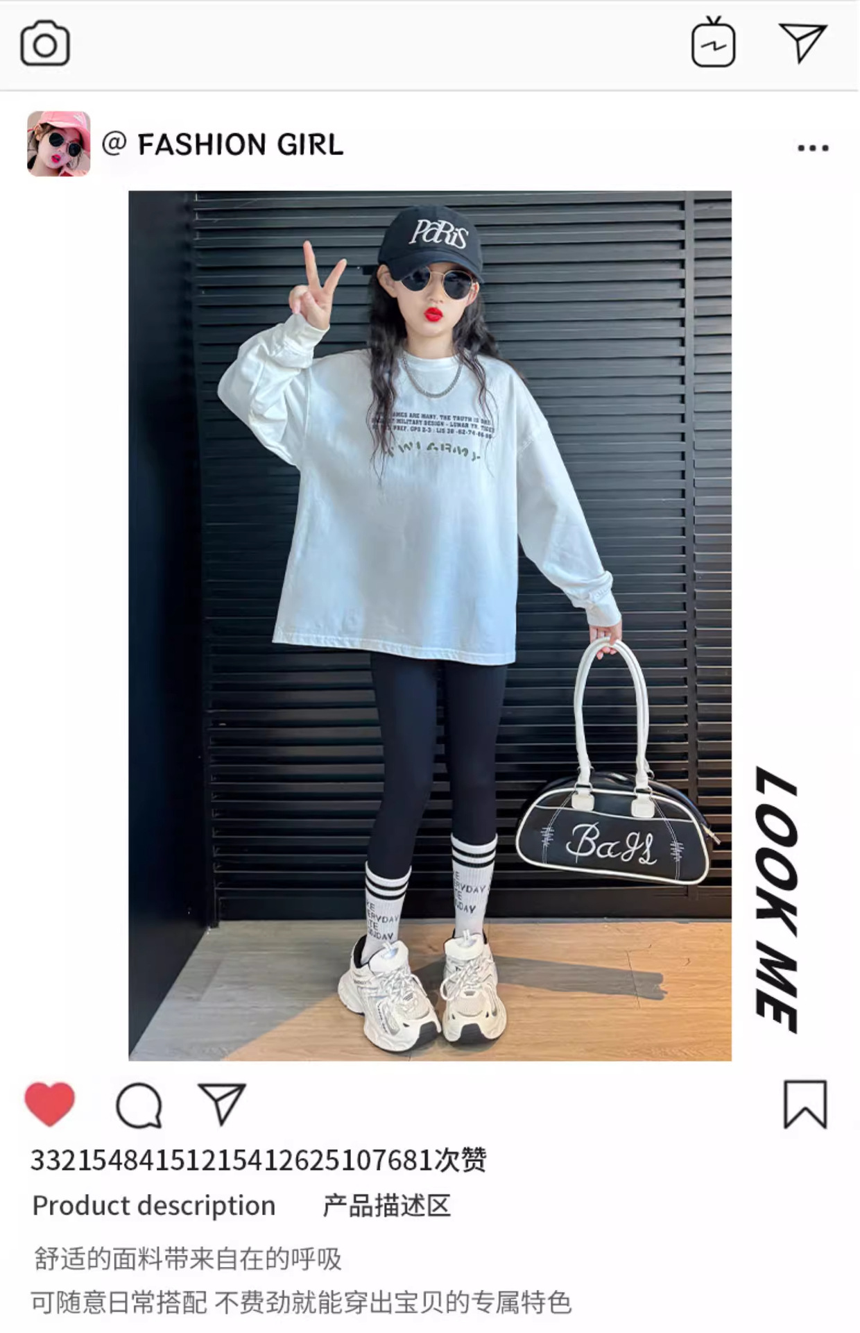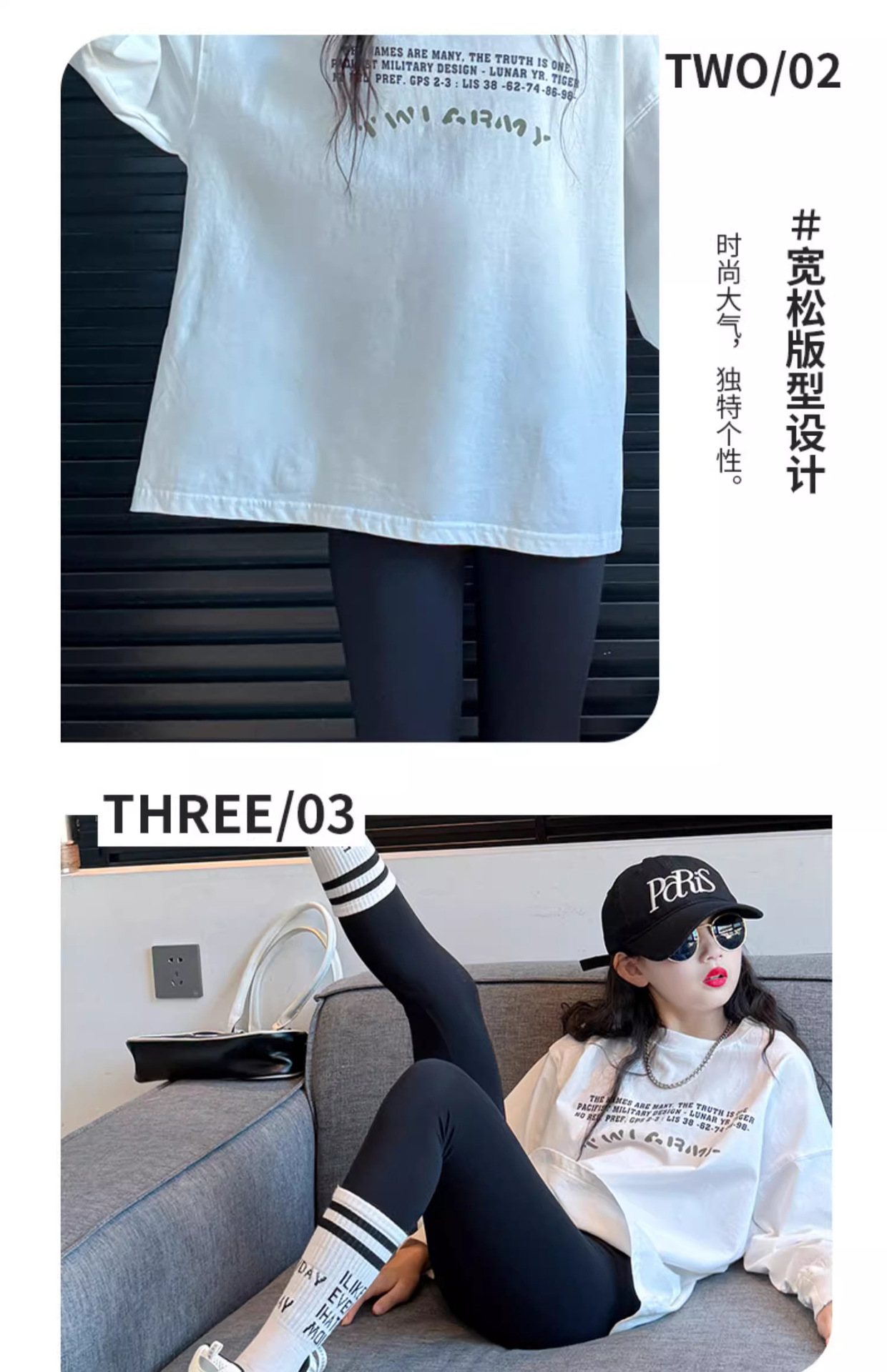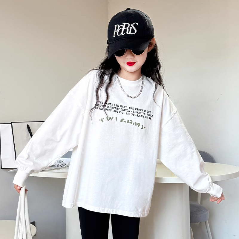 Girls' early autumn base shirt 2024 New style Children's pure cotton versatile long-sleeved T-shirt, long top for girls and adults in early autumn