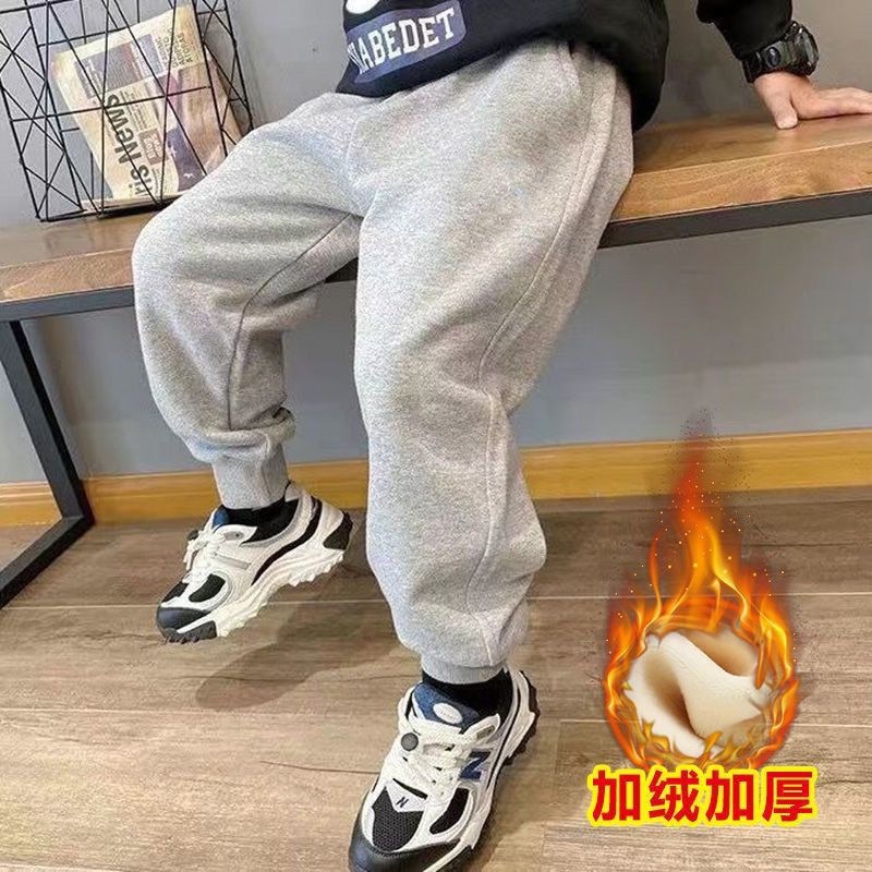 Girls' fleece pants, boys' cotton pants, thickened one-piece fleece warm outer wear for autumn and winter, children's casual sports sweatpants