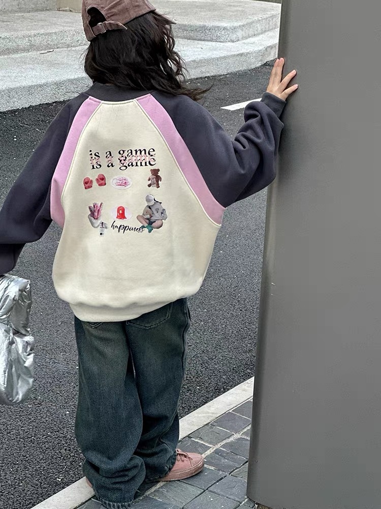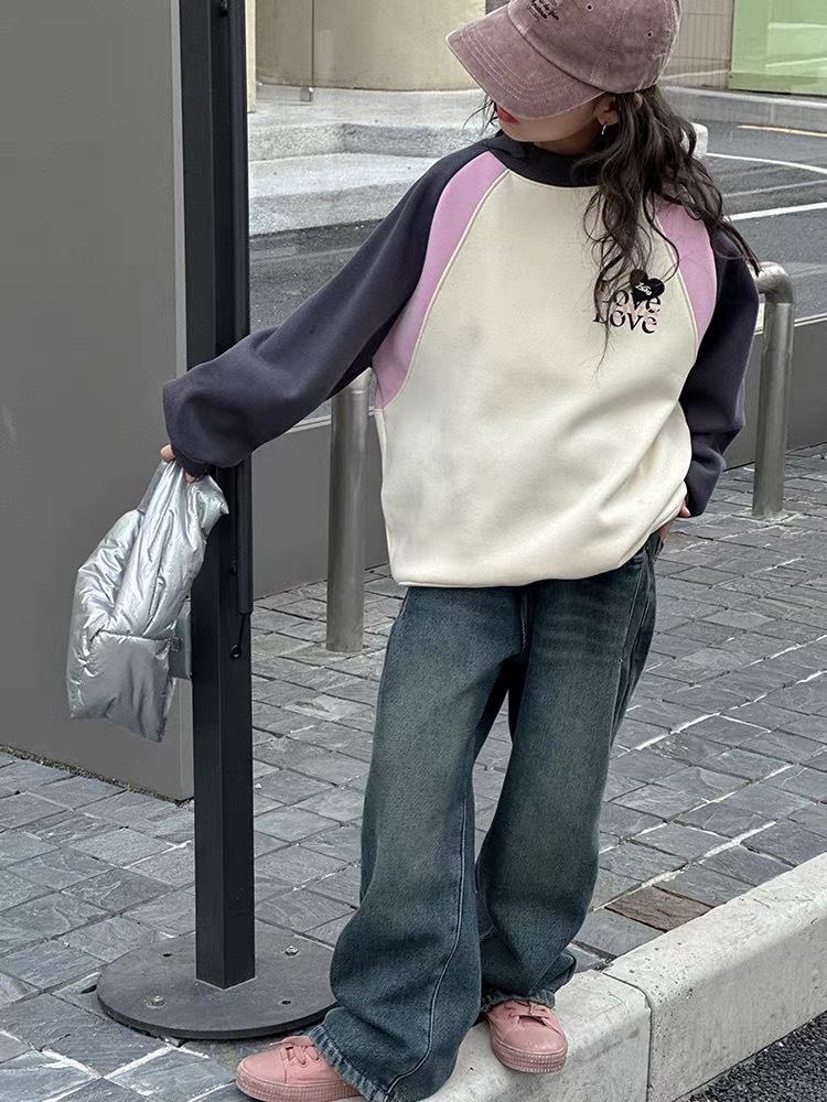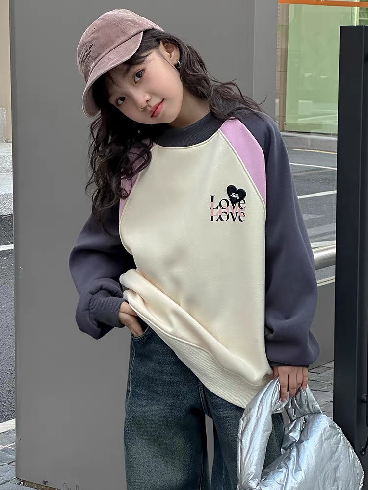 Girls' hoodie 2023 Autumn/Winter new pullover with fleece Korean-style versatile top. Girls' color matching is versatile and can be worn as an inner layer in winter