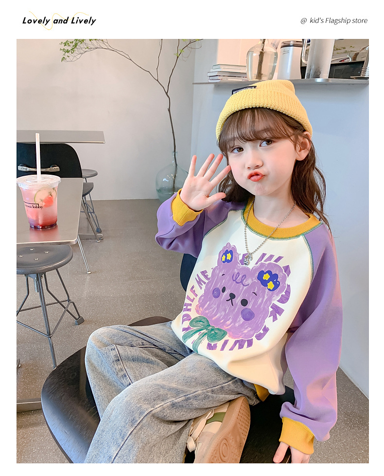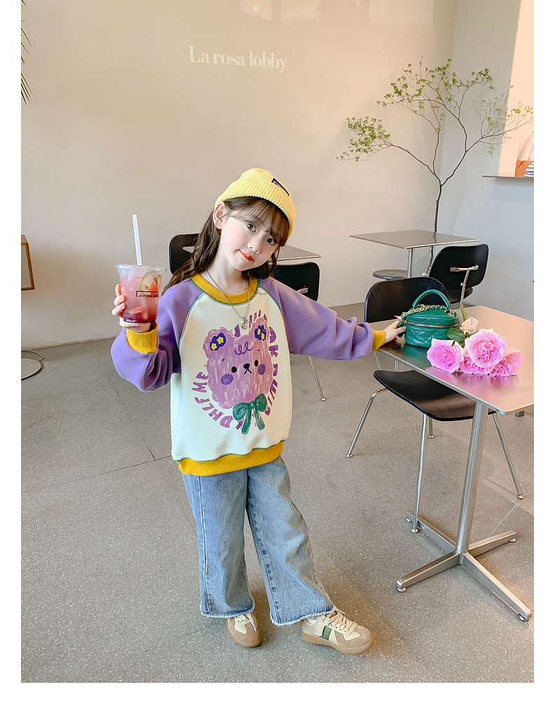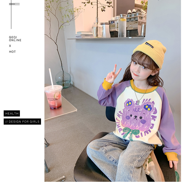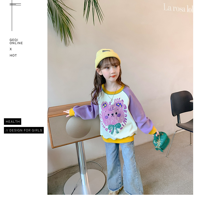 Girls' hoodie Spring and Autumn 2024 New style Stylish children's autumn wear long-sleeved little girls' autumn children's wear loose top